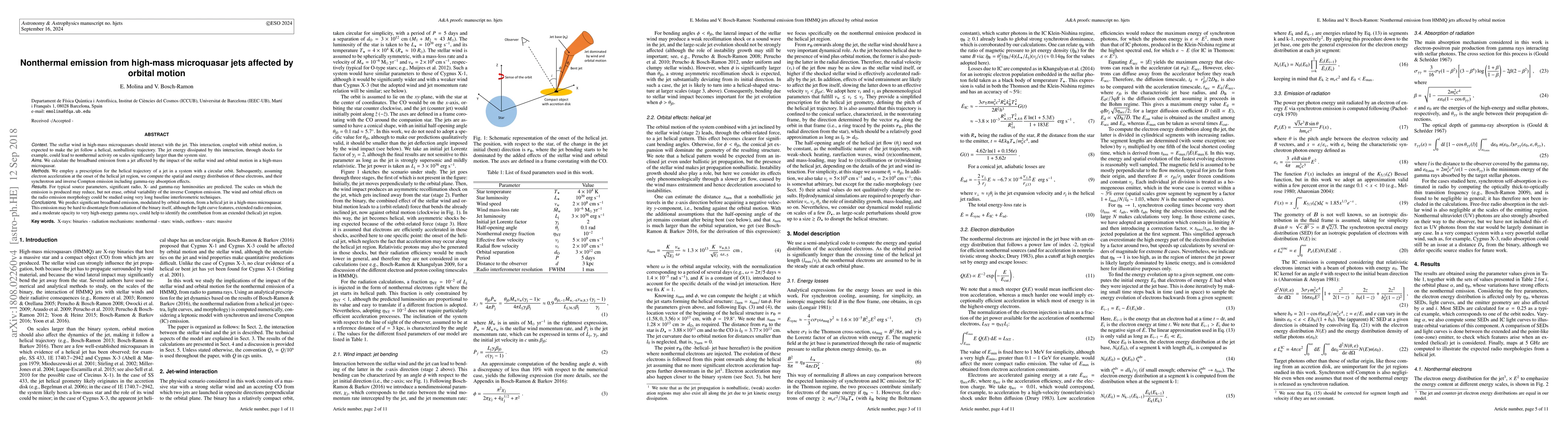 This paper investigates the nonthermal emission from jets in high-mass microquasars, focusing on the impact of stellar wind interaction and orbital motion on the jet's helical trajectory. The study predicts significant broadband emission, including radio, X-ray, and gamma-ray luminosities, modulated by orbital variability, with potential identification features for distinguishing jet contributions.