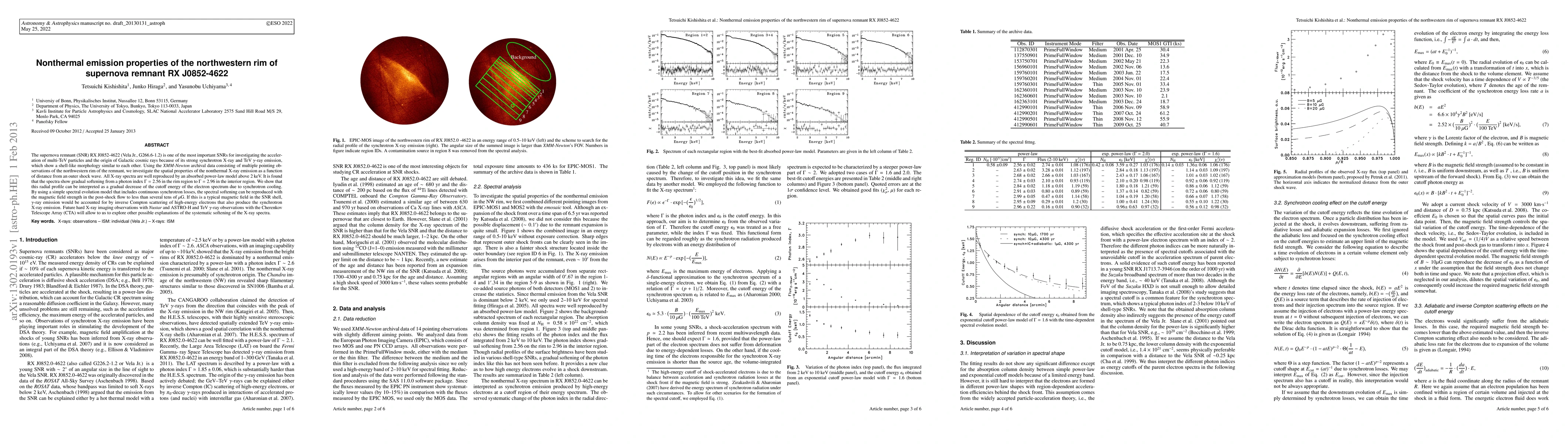This paper investigates the nonthermal X-ray emission properties of the northwestern rim of the supernova remnant RX J0852-4622, revealing a gradual softening of X-ray spectra from the rim to the interior. The findings suggest this softening is due to synchrotron cooling, indicating a magnetic field strength of less than several tens of uG.