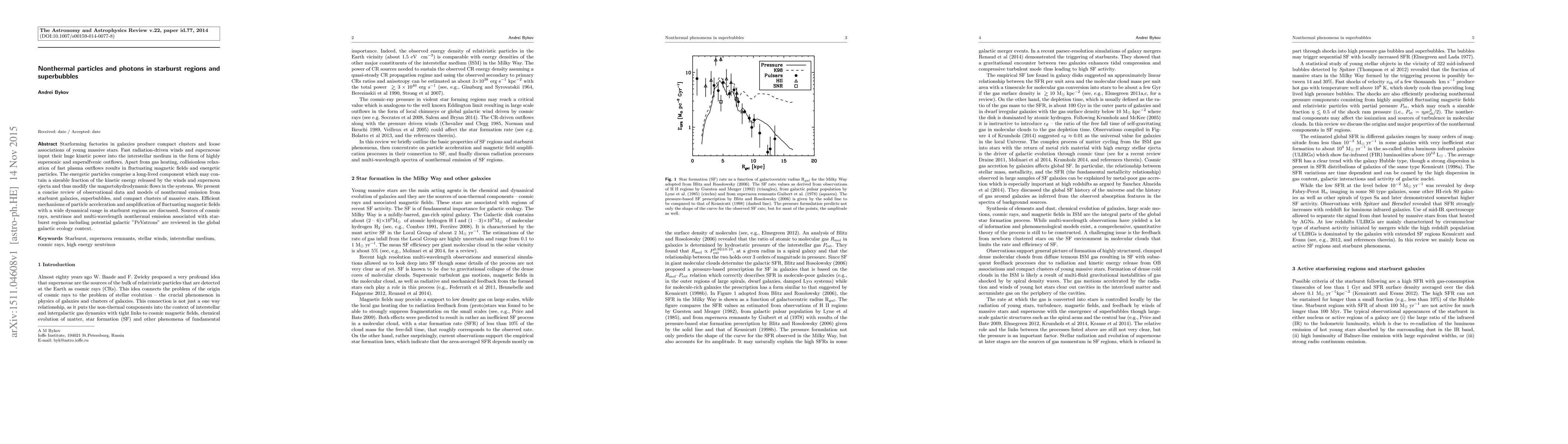 This paper reviews nonthermal particles and photons in starburst regions and superbubbles, focusing on the energetic particles and magnetic fields generated by massive star winds and supernovae. It discusses the mechanisms of particle acceleration and the implications for cosmic rays, neutrinos, and multi-wavelength nonthermal emission, including the potential for galactic "PeVatrons."