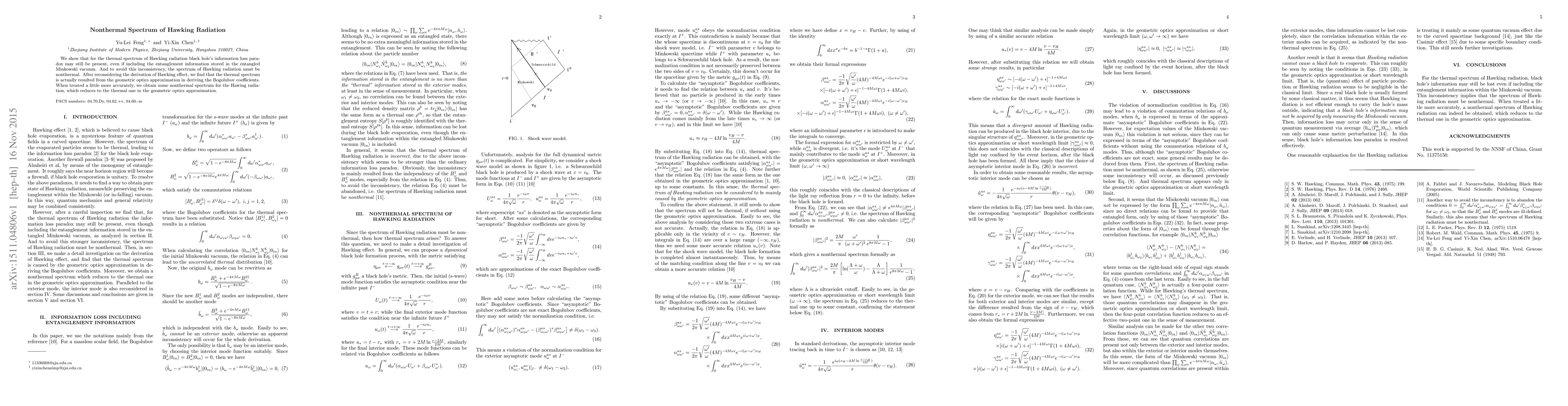 This paper argues that the thermal spectrum of Hawking radiation may still lead to information loss paradox, even with entangled Minkowski vacuum. To resolve this inconsistency, the authors propose a nonthermal spectrum for Hawking radiation, derived by more accurately treating the derivation of the Hawking effect beyond the geometric optics approximation.