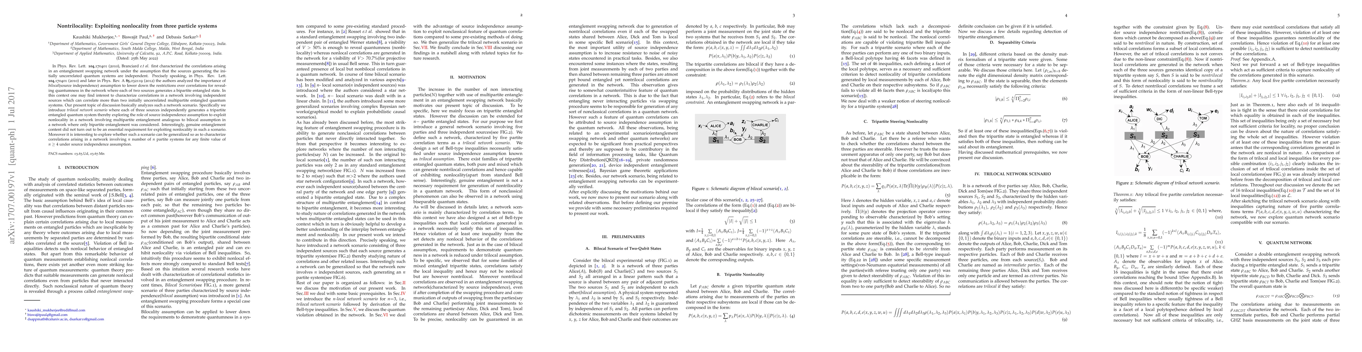 In Phys. Rev. Lett. \textbf{104},170401 (2010), Branciard \textit{e.t al.} first characterized the correlations arising in an entanglement swapping network under the assumption that the sources generating the initially uncorrelated quantum systems are independent. Precisely speaking, in Phys. Rev. Lett. \textbf{104},170401 (2010) and later in Phys. Rev. A \textbf{85},032119 (2012) the authors analyzed the importance of \textit{bilocal}(source independence) assumption to lower down the restrictions over correlations for revealing quantumness in the network where each of two sources generates a bipartite entangled state. In this context one may find interest to characterize correlations in a network involving independent sources which can correlate more than two initially uncorrelated multipartite entangled quantum systems. Our present topic of discussion basically analyzes such a network scenario. Specifically we introduce \textit{trilocal network scenario} where each of three sources independently generates a tripartite entangled quantum system thereby exploring the role of source independence assumption to exploit nonlocality in a network involving multipartite entanglement analogous to bilocal assumption in a network where only bipartite entanglement was considered. Interestingly, genuine entanglement content did not turn out to be an essential requirement for exploiting nonlocality in such a scenario. Moreover it is interesting to explore whether such a scenario can be generalized so as to characterize correlations arising in a network involving $n$ number of $n$ partite systems for any finite value of $n\geq4$ under source independence assumption.