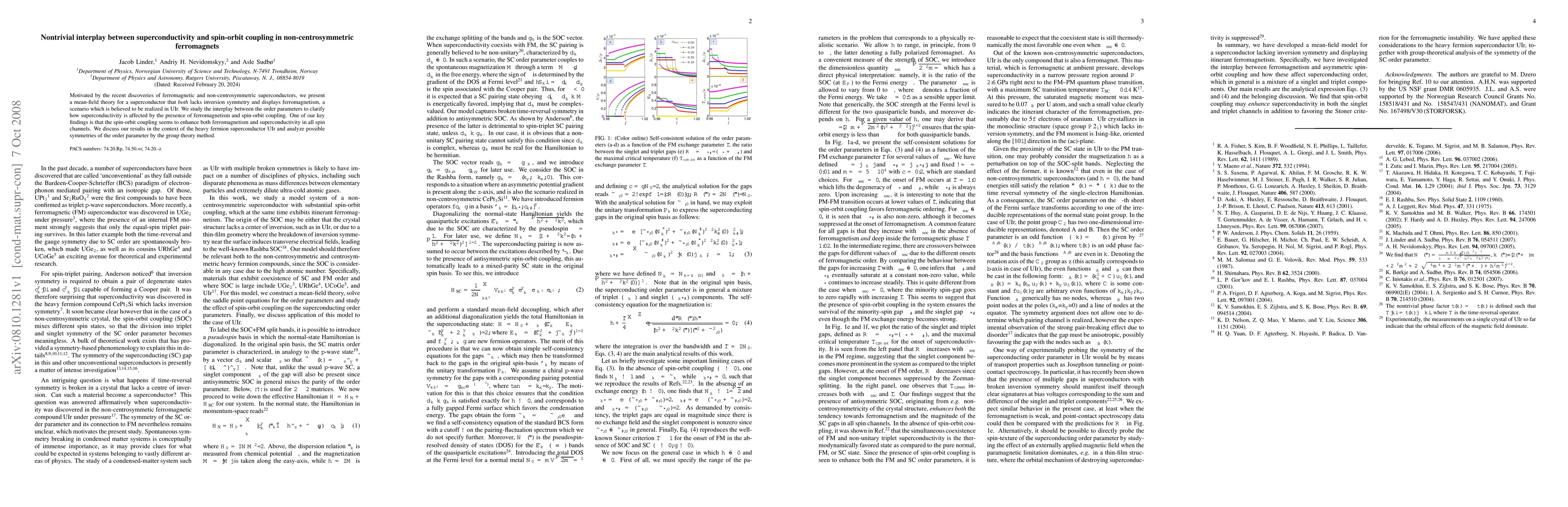 This paper develops a mean-field theory for non-centrosymmetric ferromagnets, focusing on the interplay between superconductivity and spin-orbit coupling. The study reveals that spin-orbit coupling enhances both ferromagnetism and superconductivity, with implications for understanding the properties of the heavy fermion superconductor UIr.