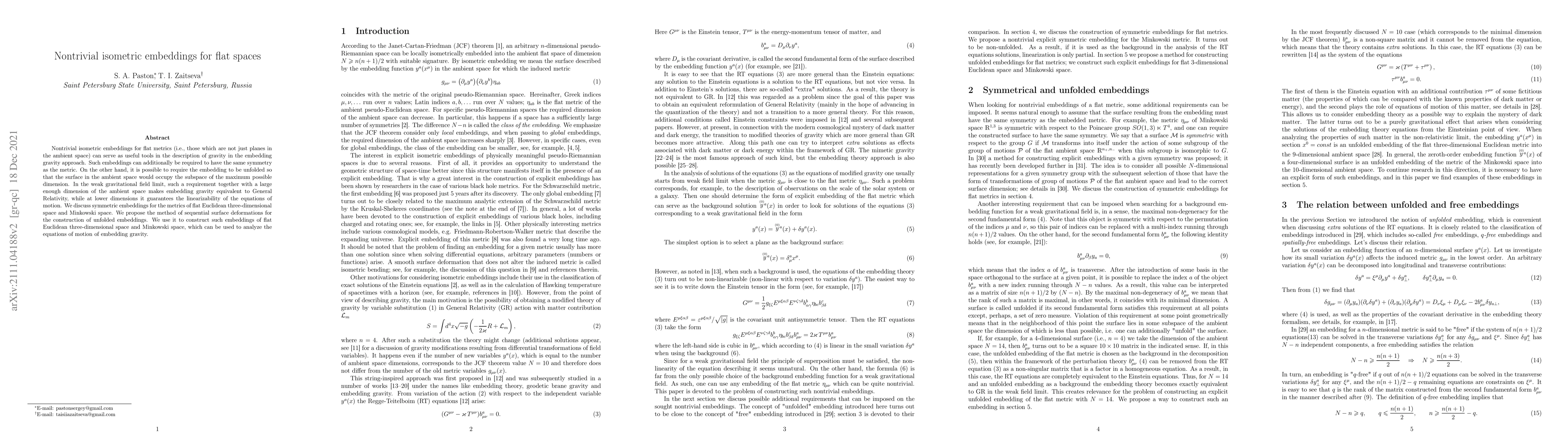 Researchers developed a method to create nontrivial isometric embeddings for flat spaces, which can help describe gravity in the embedding gravity approach, particularly when unfolded to maximize dimensionality.