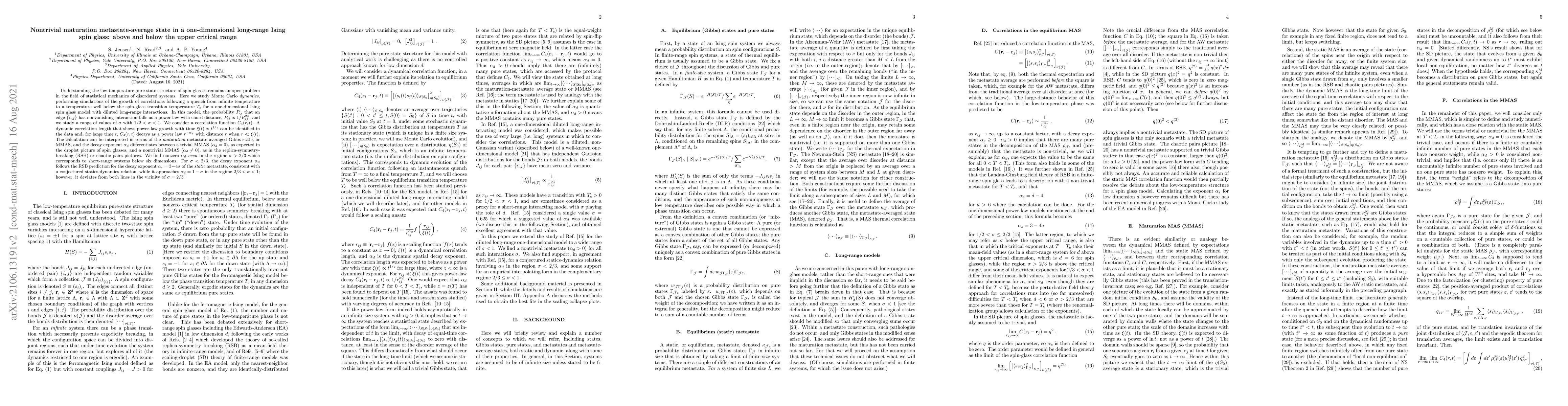 This paper investigates the low-temperature dynamics of a one-dimensional Ising spin glass model using Monte Carlo simulations, identifying a dynamic correlation length and a nontrivial maturation metastate-averaged Gibbs state (MMAS) characterized by a decay exponent $\alpha_d$. The findings reveal a nontrivial MMAS even in short-range systems, with $\alpha_d$ following replica-symmetry-breaking predictions for certain interaction ranges.