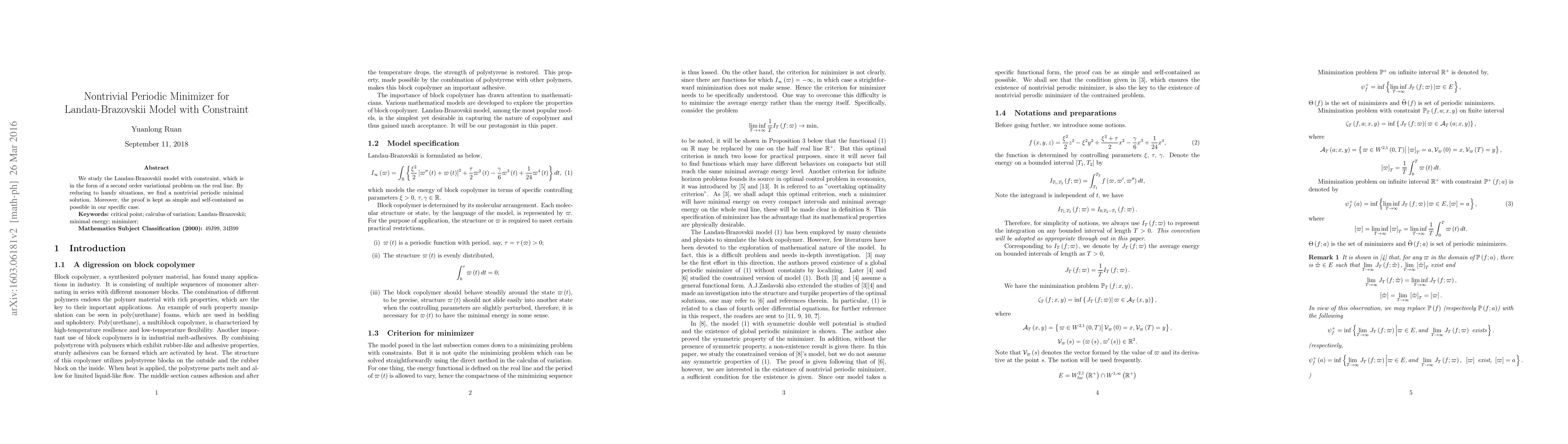 Researchers found a nontrivial periodic solution for a model of block copolymers with added physical constraints, which could lead to new insights into polymer materials' properties and applications.