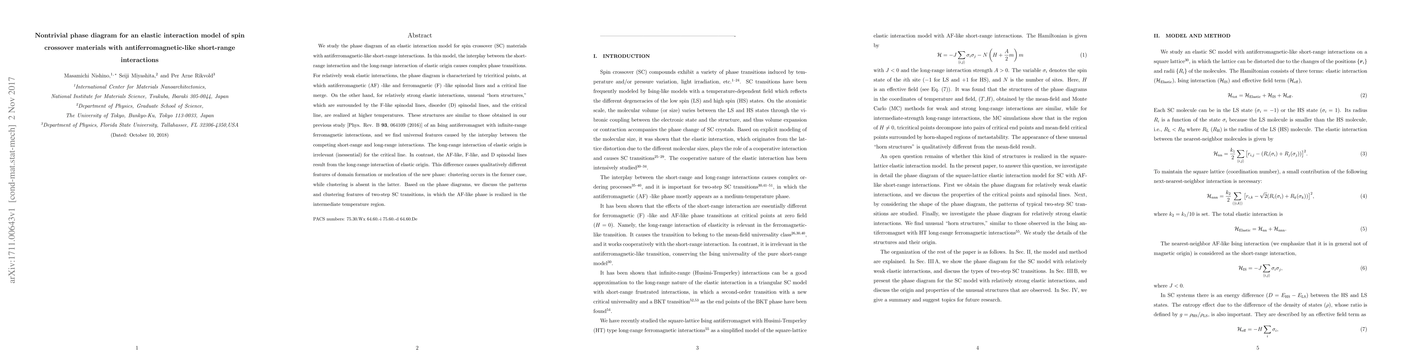 This paper investigates the phase diagram of an elastic interaction model for spin crossover materials with antiferromagnetic-like short-range interactions, revealing complex phase transitions and "horn structures" for strong elastic interactions, and discussing the clustering features of two-step SC transitions.