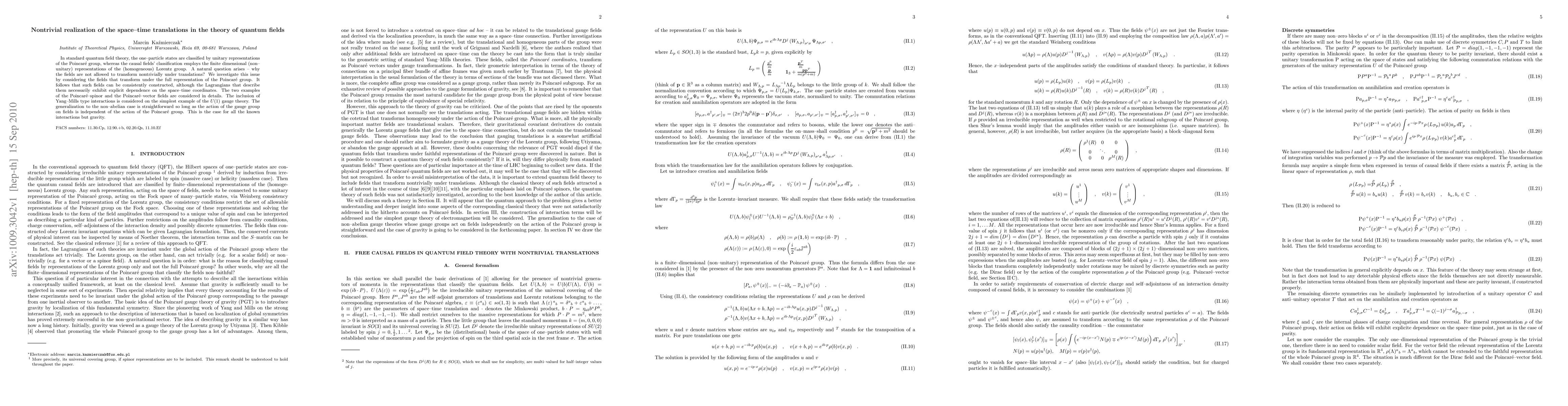 In standard quantum field theory, the one-particle states are classified by unitary representations of the Poincar\'e group, whereas the causal fields' classification employs the finite dimensional (non-unitary) representations of the (homogeneous) Lorentz group. A natural question arises - why the fields are not allowed to transform nontrivially under translations? We investigate this issue by considering the fields that transform under the full representation of the Poincar\'e group. It follows that such fields can be consistently constructed, although the Lagrangians that describe them necessarily exhibit explicit dependence on the space-time coordinates. The two examples of the Poincar\'e-spinor and the Poincar\'e-vector fields are considered in details. The inclusion of Yang--Mills type interactions is considered on the simplest example of the U(1) gauge theory. The generalization to the non-abelian case is straightforward so long as the action of the gauge group on fields is independent of the action of the Poincar\'e group. This is the case for all the known interactions but gravity.