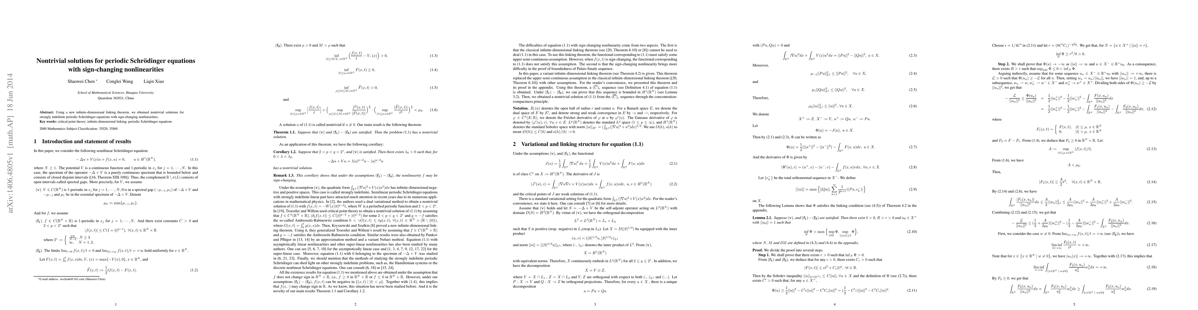 Summary: A novel infinite-dimensional linking theorem was employed to find nontrivial solutions for strongly indefinite periodic Schrödinger equations featuring sign-changing nonlinearities. This method provides new insights into the behavior of such complex systems.
