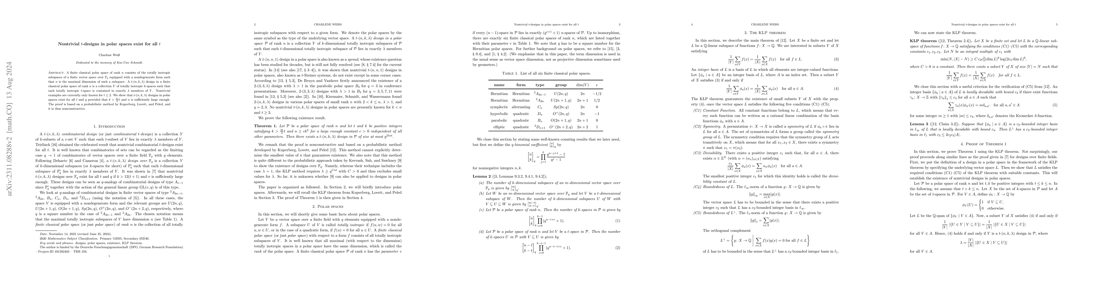 This paper demonstrates the existence of nontrivial $t$-designs in finite classical polar spaces for all $t$, provided that the dimension $k$ exceeds $\frac{21}{2}t$ and the rank $n$ is sufficiently large. The proof employs a probabilistic method, making it nonconstructive.