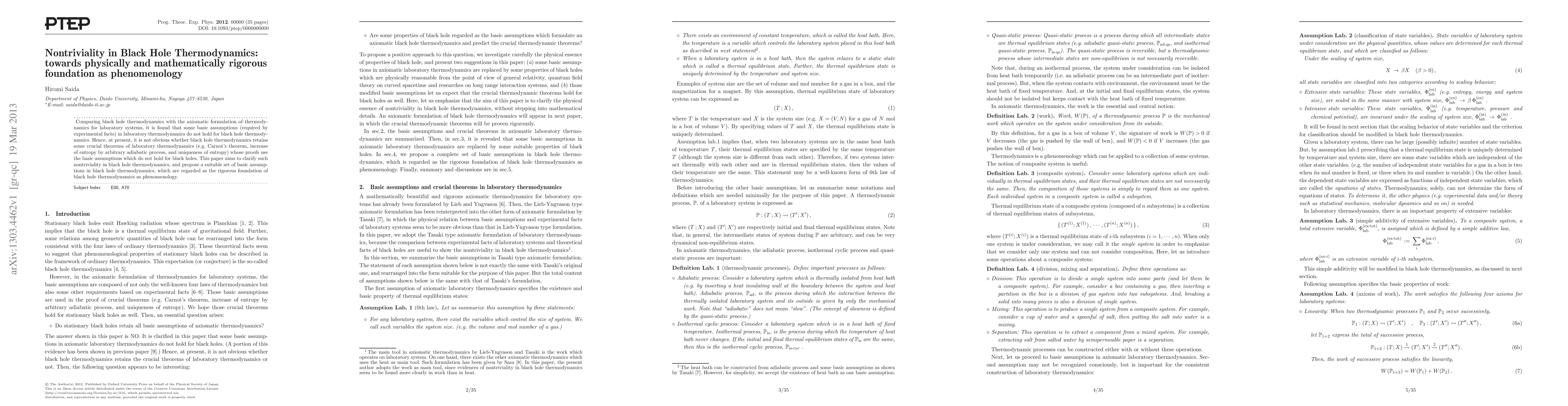 Comparing black hole thermodynamics with the axiomatic formulation of thermodynamics for laboratory systems, it is found that some basic assumptions (required by experimental facts) in laboratory thermodynamics do not hold for black hole thermodynamics. Hence, at present, it is not obvious whether black hole thermodynamics retains some crucial theorems of laboratory thermodynamics (e.g. Carnot's theorem, increase of entropy by arbitrary adiabatic process, and uniqueness of entropy) whose proofs use the basic assumptions which do not hold for black holes. This paper aims to clarify such nontriviality in black hole thermodynamics, and propose a suitable set of basic assumptions in black hole thermodynamics, which are regarded as the rigorous foundation of black hole thermodynamics as phenomenology.
