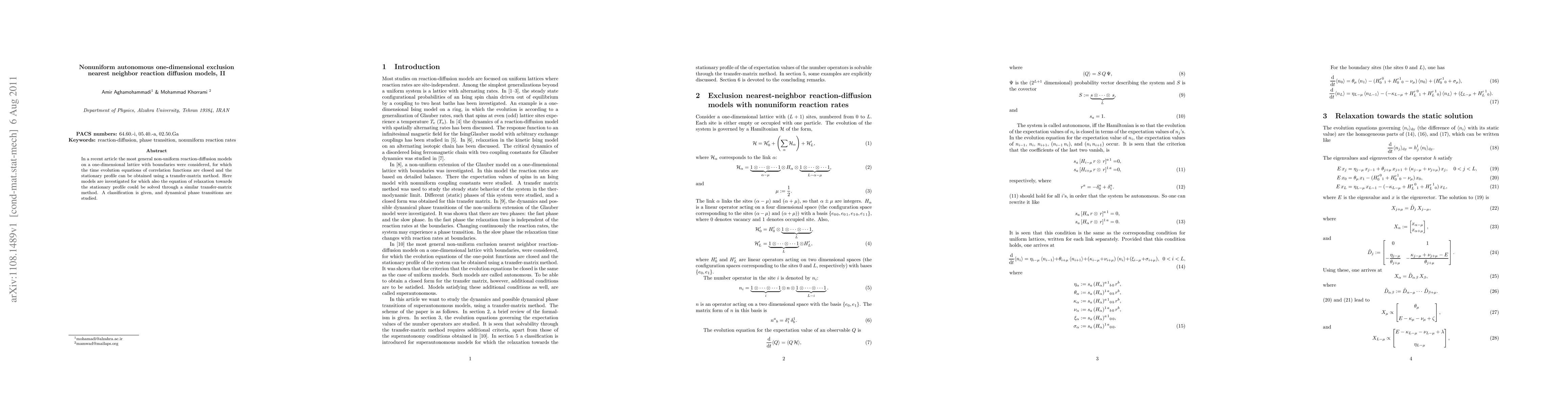 This paper investigates non-uniform reaction-diffusion models on a one-dimensional lattice, focusing on those where the relaxation towards a stationary profile can be solved via a transfer-matrix method. It classifies these models and examines dynamical phase transitions.