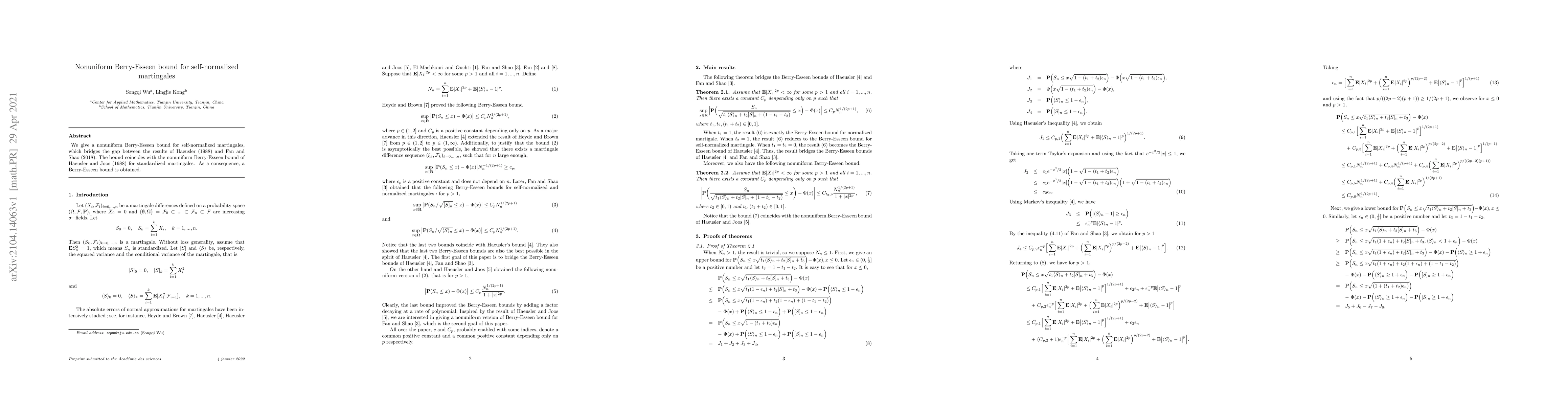 Summary: This research presents a nonuniform Berry-Esseen bound for self-normalized martingales, refining results from Haeusler (1988) and Fan & Shao (2018), and aligns with the bound of Haeusler and Joos (1988) for standardized martingales, leading to improved overall Berry-Esseen bounds.