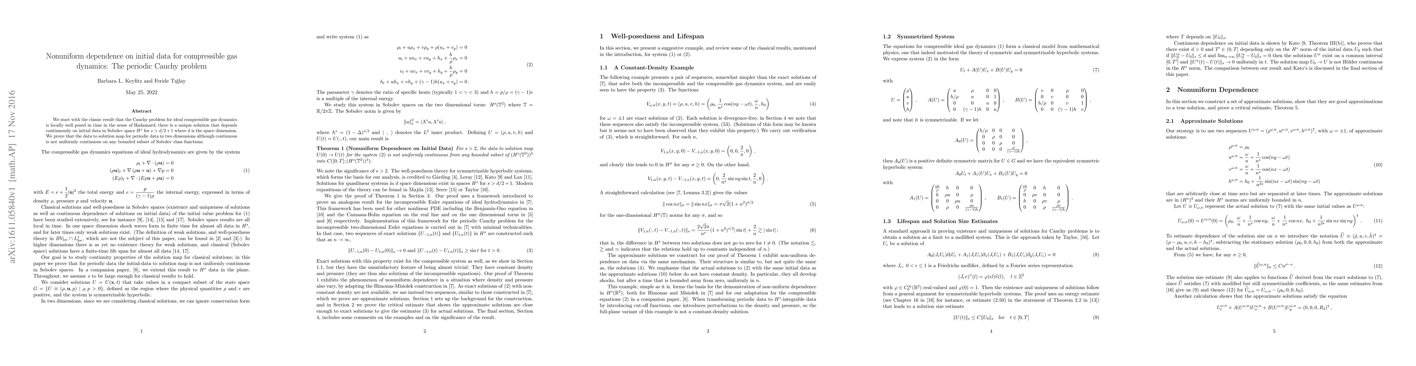 A study found that a specific problem in compressible gas dynamics has a solution that depends continuously on initial data, but this dependence is not uniform across all possible initial data sets.