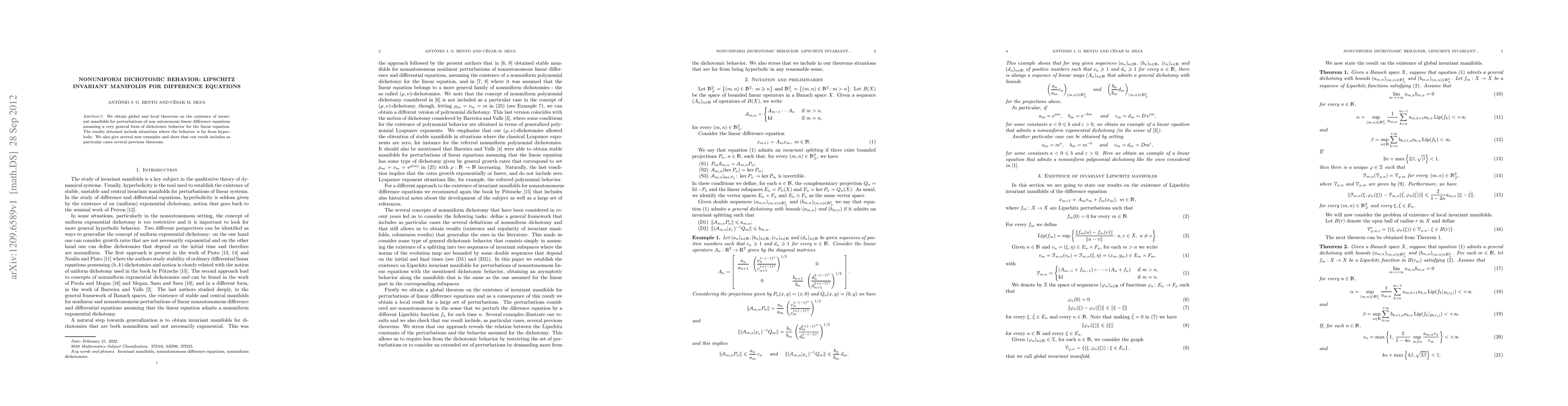 We obtain global and local theorems on the existence of invariant manifolds for perturbations of non autonomous linear difference equations assuming a very general form of dichotomic behavior for the linear equation. The results obtained include situations where the behavior is far from hyperbolic. We also give several new examples and show that our result includes as particular cases several previous theorems.