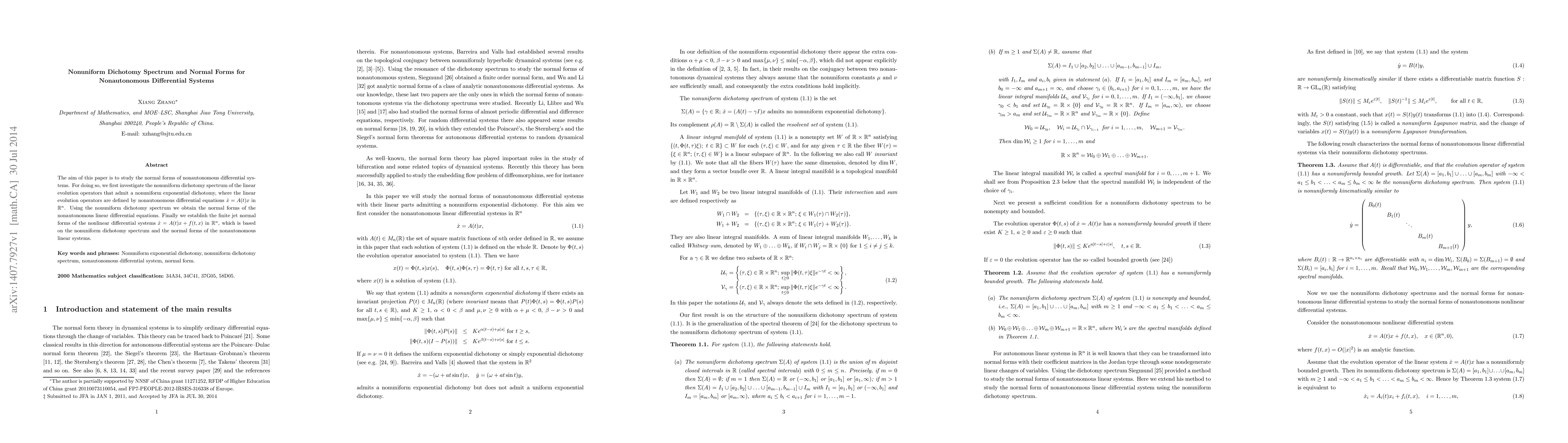 The aim of this paper is to study the normal forms of nonautonomous differential systems. For doing so, we first investigate the nonuniform dichotomy spectrum of the linear evolution operators that admit a nonuniform exponential dichotomy, where the linear evolution operators are defined by nonautonomous differential equations $\dot x=A(t)x$ in $\R^n$. Using the nonuniform dichotomy spectrum we obtain the normal forms of the nonautonomous linear differential equations. Finally we establish the finite jet normal forms of the nonlinear differential systems $\dot x=A(t)x+f(t,x)$ in $\R^n$, which is based on the nonuniform dichotomy spectrum and the normal forms of the nonautonomous linear systems.