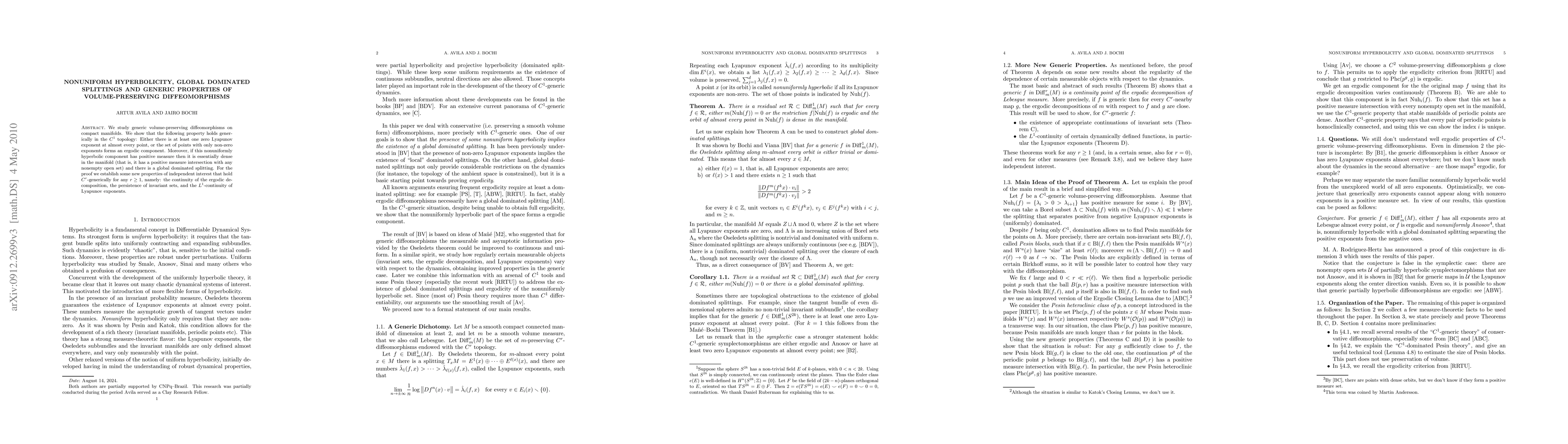 The novelty of this work lies in its comprehensive analysis of generic properties of volume-preserving diffeomorphisms, establishing new results on ergodic decomposition, invariant set persistence, and Lyapunov exponent continuity, which extend previous findings to C^r-generic diffeomorphisms for any r ≥ 1.