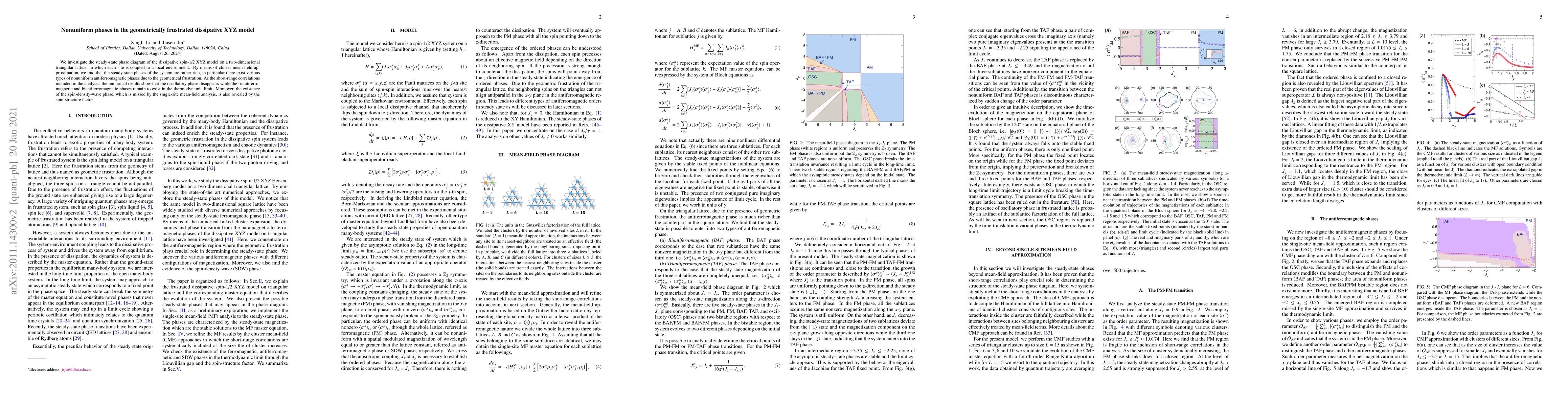 The research paper investigates nonuniform phases in a 2D triangular lattice XYZ model, revealing rich steady-state phases including oscillatory, triantiferromagnetic, biantiferromagnetic, and spin-density-wave phases due to geometrical frustration.