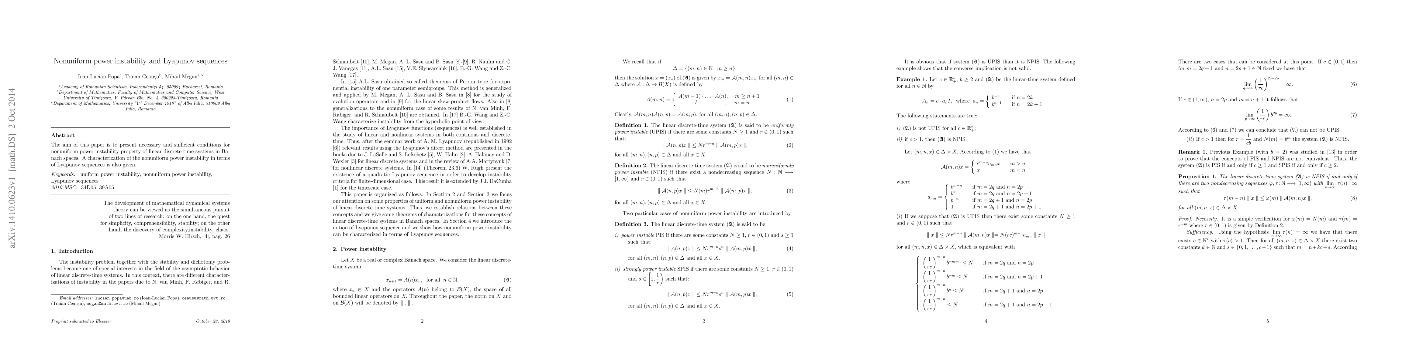 The aim of this paper is to present necessary and sufficient conditions for nonuniform power instability property of linear discrete-time systems in Banach spaces. A characterization of the nonuniform power instability in terms of Lyapunov sequences is also given.