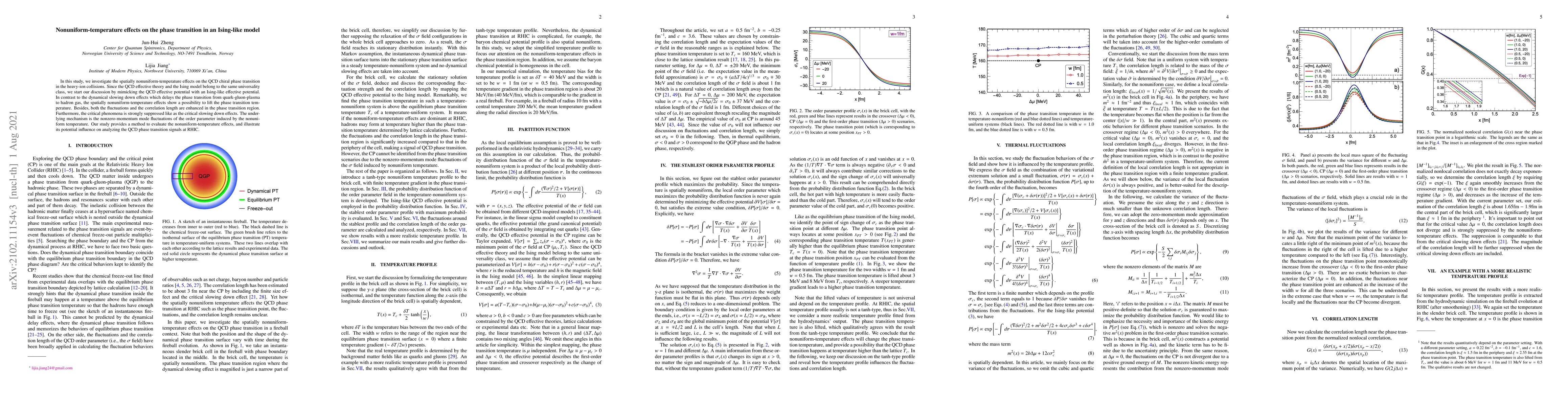 In this study, we investigate the spatially nonuniform-temperature effects on the QCD chiral phase transition in the heavy-ion collisions. Since the QCD effective theory and the Ising model belong to the same universality class, we start our discussion by mimicking the QCD effective potential with an Ising-like effective potential. In contrast to the dynamical slowing down effects which delays the phase transition from quark-gluon-plasma to hadron gas, the spatially nonuniform-temperature effects show a possibility to lift the phase transition temperature. Besides, both the fluctuations and the correlation length are enhanced in the phase transition region. Furthermore, the critical phenomena is strongly suppressed like as the critical slowing down effects. The underlying mechanism is the nonzero-momentum mode fluctuations of the order parameter induced by the nonuniform temperature. Our study provides a method to evaluate the nonuniform-temperature effects, and illustrate its potential influence on analyzing the QCD phase transition signals at RHIC.