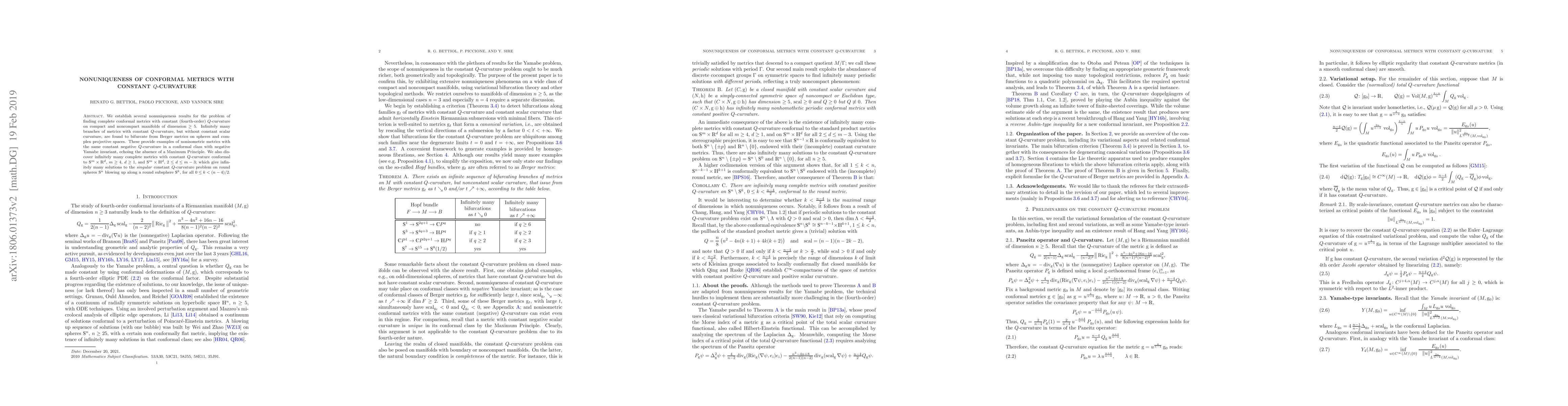 We establish several nonuniqueness results for the problem of finding complete conformal metrics with constant (fourth-order) $Q$-curvature on compact and noncompact manifolds of dimension $\geq5$. Infinitely many branches of metrics with constant $Q$-curvature, but without constant scalar curvature, are found to bifurcate from Berger metrics on spheres and complex projective spaces. These provide examples of nonisometric metrics with the same constant negative $Q$-curvature in a conformal class with negative Yamabe invariant, echoing the absence of a Maximum Principle. We also discover infinitely many complete metrics with constant $Q$-curvature conformal to $\mathbb S^m\times\mathbb R^d$, $m\geq4$, $d\geq1$, and $\mathbb S^m\times\mathbb H^d$, $2\leq d\leq m-3$; which give infinitely many solutions to the singular constant $Q$-curvature problem on round spheres $\mathbb S^n$ blowing up along a round subsphere $\mathbb S^k$, for all $0\leq k<(n-4)/2$.