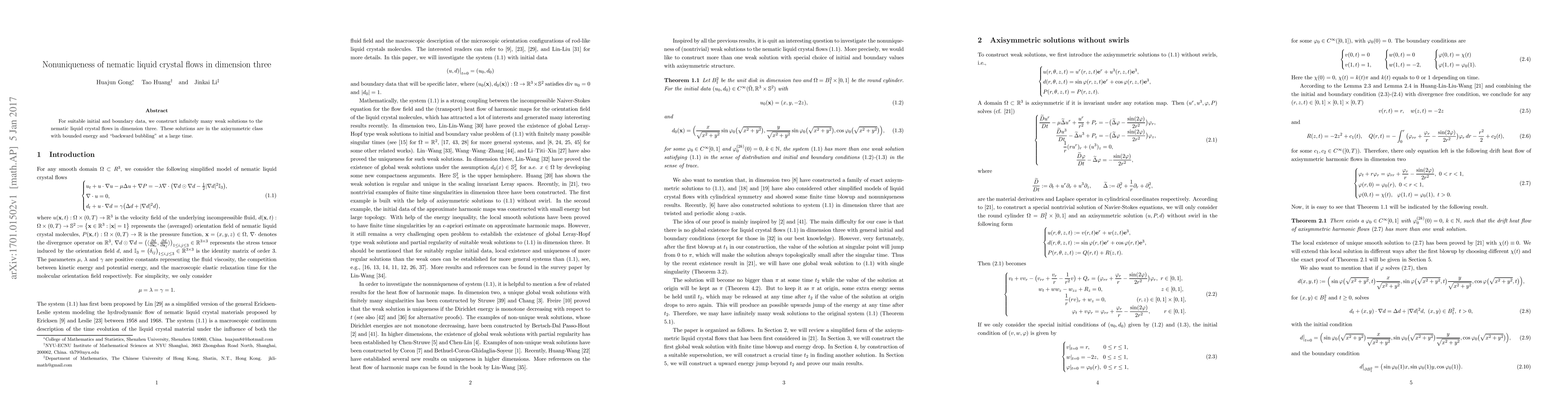 This paper demonstrates the nonuniqueness of weak solutions for nematic liquid crystal flows in three dimensions, constructing infinitely many distinct solutions under specific initial and boundary conditions, characterized by axisymmetry, bounded energy, and backward bubbling behavior.