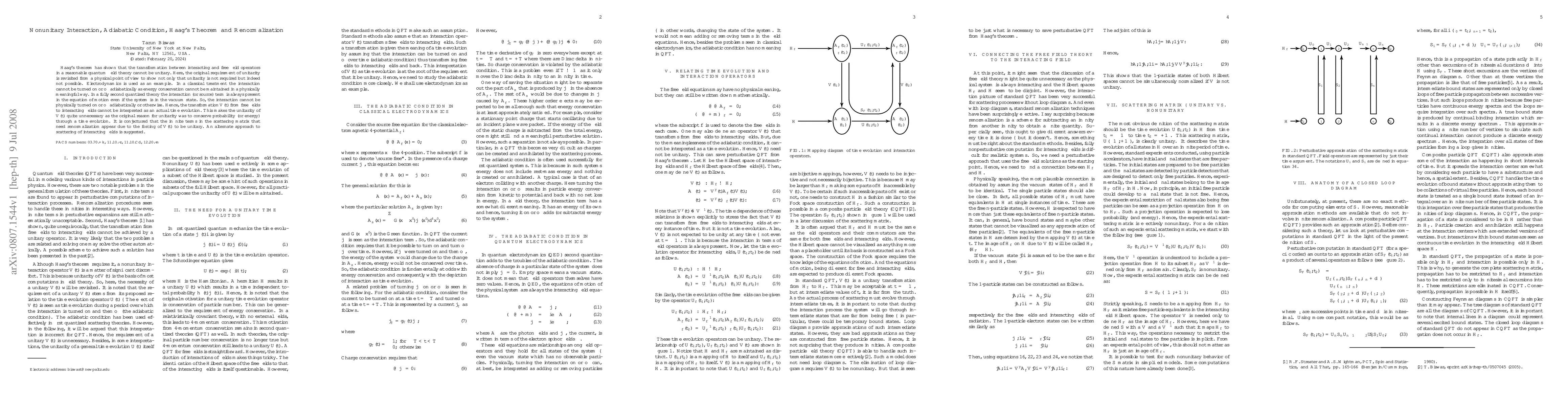 Haag's theorem has shown that the transformation between interacting and free field operators in a reasonable quantum field theory cannot be unitary. Here, the original requirement of unitarity is revisited from a physical point of view to show not only that unitarity is not required but indeed not possible. Electrodynamics is used as an example. In a classical treatment the interaction cannot be turned on or off adiabatically as energy conservation cannot be maintained in a physically meaningful way. In a fully second quantized theory the interaction (or source) term is always present in the equation of motion even if the system is in the vacuum state. So, the interaction cannot be physically turned on or off adiabatically or otherwise. Hence, the transformation V(t) from free fields to interacting fields cannot be interpreted as an actual time evolution. This makes the unitarity of V(t)quite unnecessary as the original reason for unitarity was to conserve probability (or energy) through a time evolution. It is conjectured that the infinite terms in the scattering matrix that need renormalization appear due to the forcing of V(t)to be unitary. An alternate approach to scattering of interacting fields is suggested.