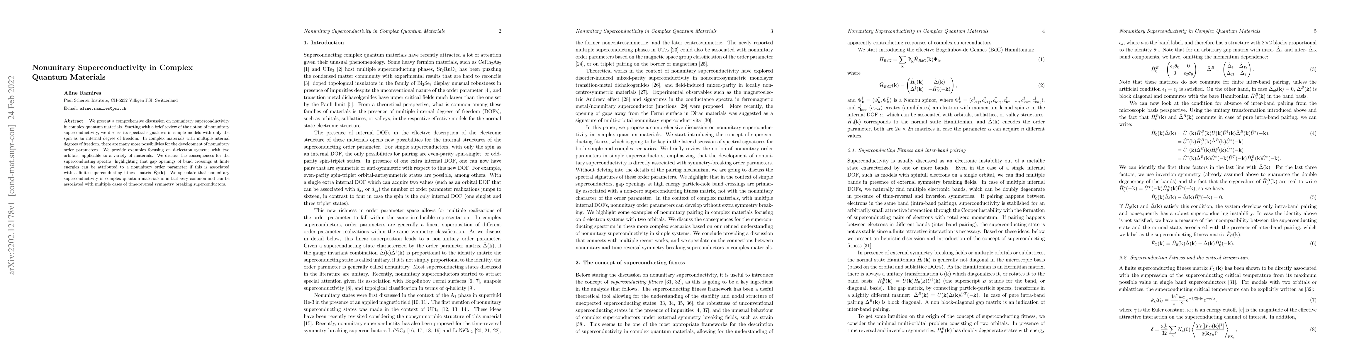 This paper explores nonunitary superconductivity in complex quantum materials, highlighting its spectral signatures and implications for superconducting spectra. It suggests that nonunitary order parameters, linked to finite superconducting fitness matrices, are common in materials with multiple internal degrees of freedom, particularly in d-electron systems with two orbitals.