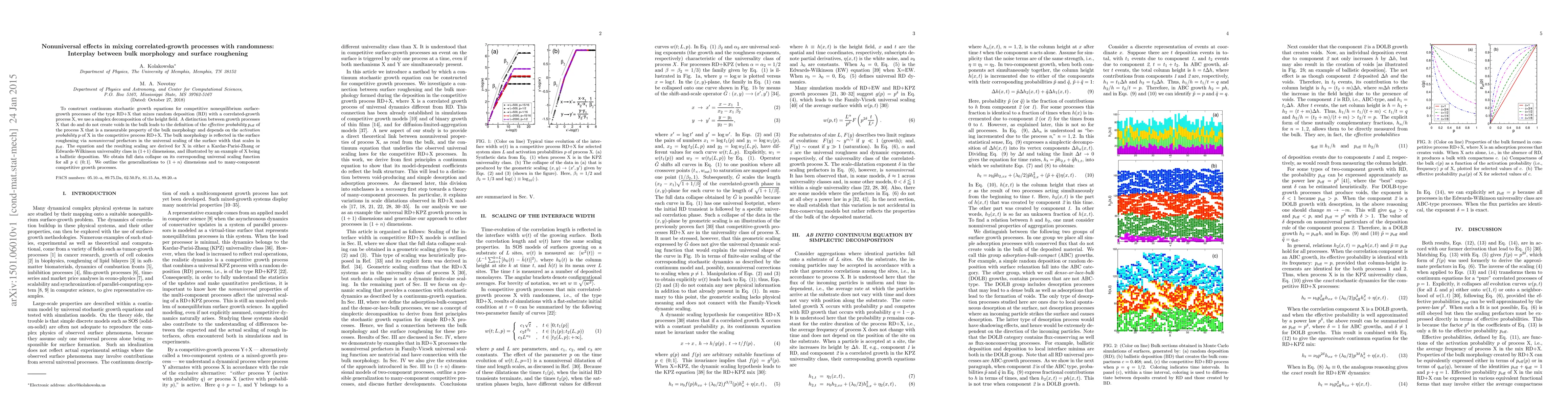 This research derives stochastic growth equations for competitive surface processes combining random deposition with correlated-growth. It introduces 'effective probability' p_eff, reflecting bulk morphology and influenced by activation probability p. Nonuniversal prefactors in surface roughening scaling are linked to p_eff, illustrated via ballistic deposition example, showing full data collapse in universal scaling function for all p in (0;1]. The methodology is generalizable to higher dimensions and multiple-component processes.
