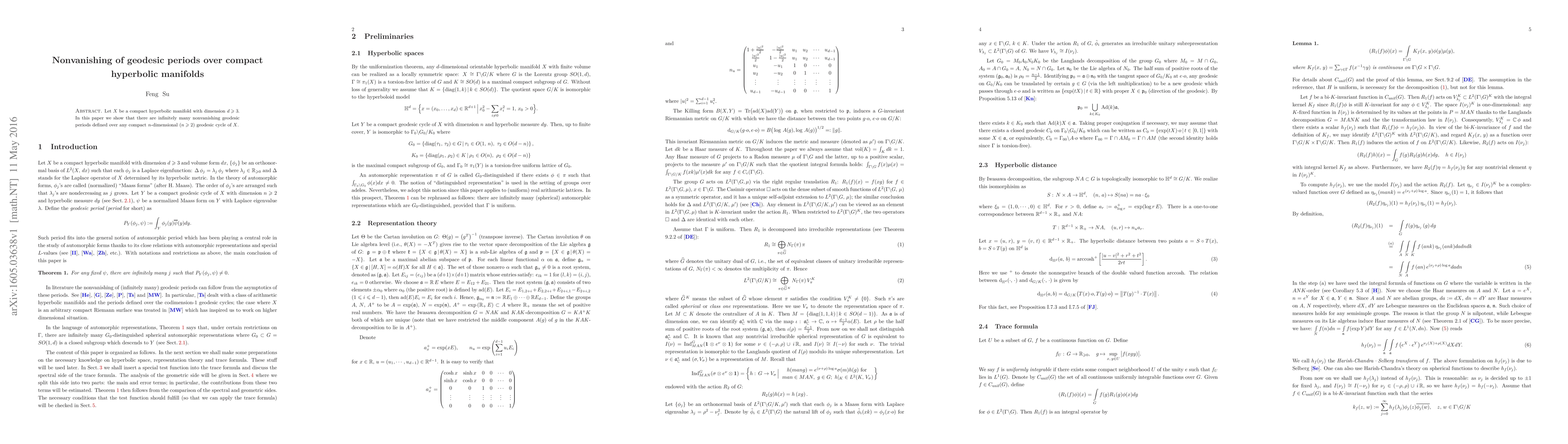 Summary: The paper demonstrates that for any compact hyperbolic manifold $X$ of dimension $d\geqslant3$, there exist infinitely many nonvanishing geodesic periods associated with any $n$-dimensional ($n\geqslant2$) geodesic cycle. This result highlights the rich structure of geodesic flows in higher-dimensional hyperbolic spaces.