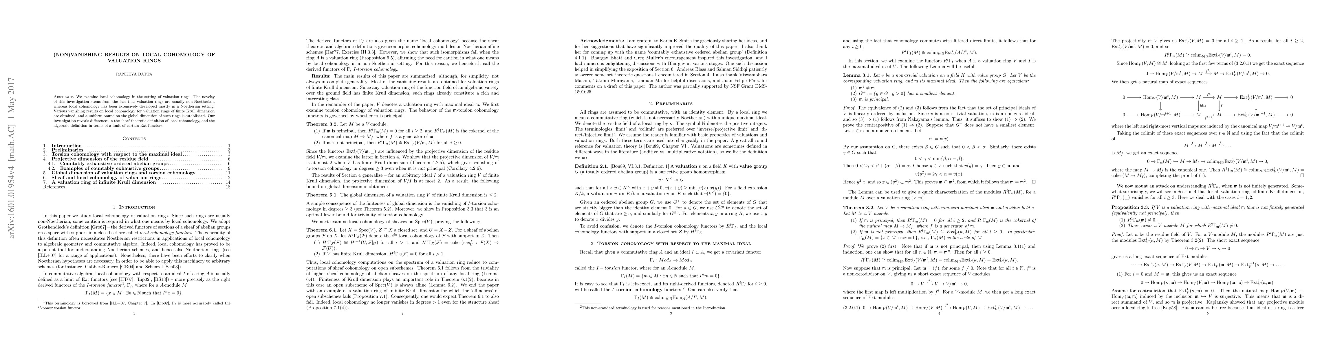 This paper investigates local cohomology in non-Noetherian valuation rings, proving vanishing results tied to a global dimension bound. It highlights distinctions between sheaf-theoretic and algebraic definitions of local cohomology in this context.