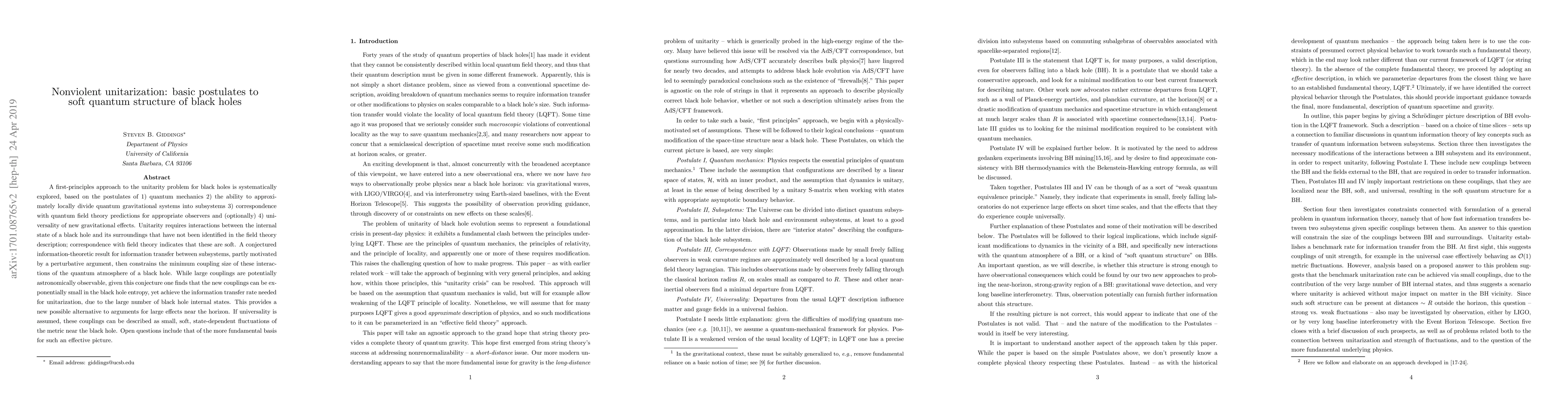 A first-principles approach to the unitarity problem for black holes is systematically explored, based on the postulates of 1) quantum mechanics 2) the ability to approximately locally divide quantum gravitational systems into subsystems 3) correspondence with quantum field theory predictions for appropriate observers and (optionally) 4) universality of new gravitational effects. Unitarity requires interactions between the internal state of a black hole and its surroundings that have not been identified in the field theory description; correspondence with field theory indicates that these are soft. A conjectured information-theoretic result for information transfer between subsystems, partly motivated by a perturbative argument, then constrains the minimum coupling size of these interactions of the quantum atmosphere of a black hole. While large couplings are potentially astronomically observable, given this conjecture one finds that the new couplings can be exponentially small in the black hole entropy, yet achieve the information transfer rate needed for unitarization, due to the large number of black hole internal states. This provides a new possible alternative to arguments for large effects near the horizon. If universality is assumed, these couplings can be described as small, soft, state-dependent fluctuations of the metric near the black hole. Open questions include that of the more fundamental basis for such an effective picture.