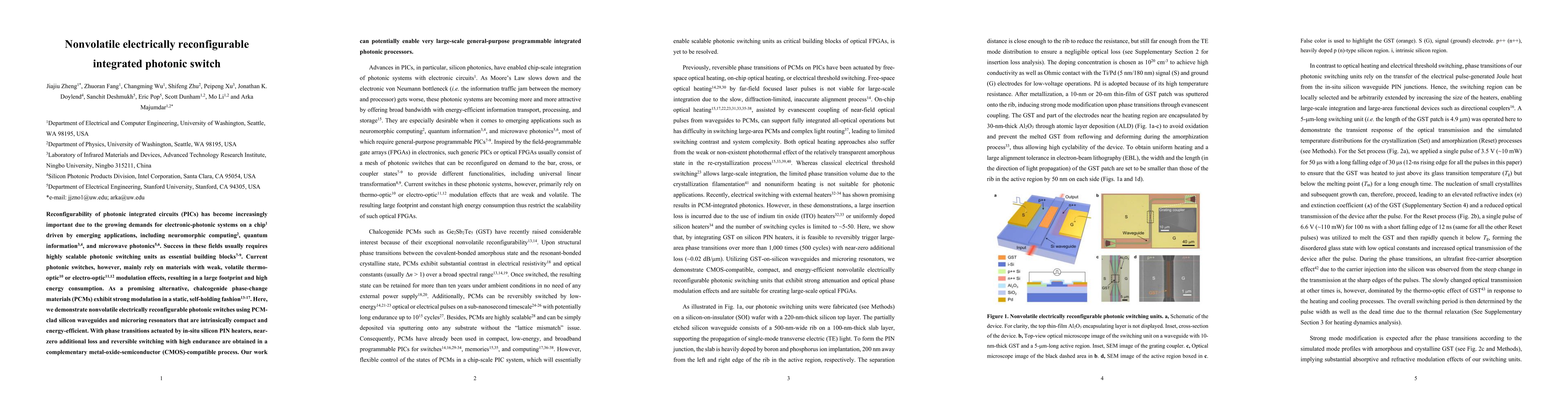 This research demonstrates nonvolatile, electrically reconfigurable photonic switches using chalcogenide phase-change materials within silicon waveguides and microring resonators, offering compact, energy-efficient, and scalable solutions for emerging photonic applications. The proposed switches achieve reversible and high-endurance switching with minimal additional loss in a CMOS-compatible process.