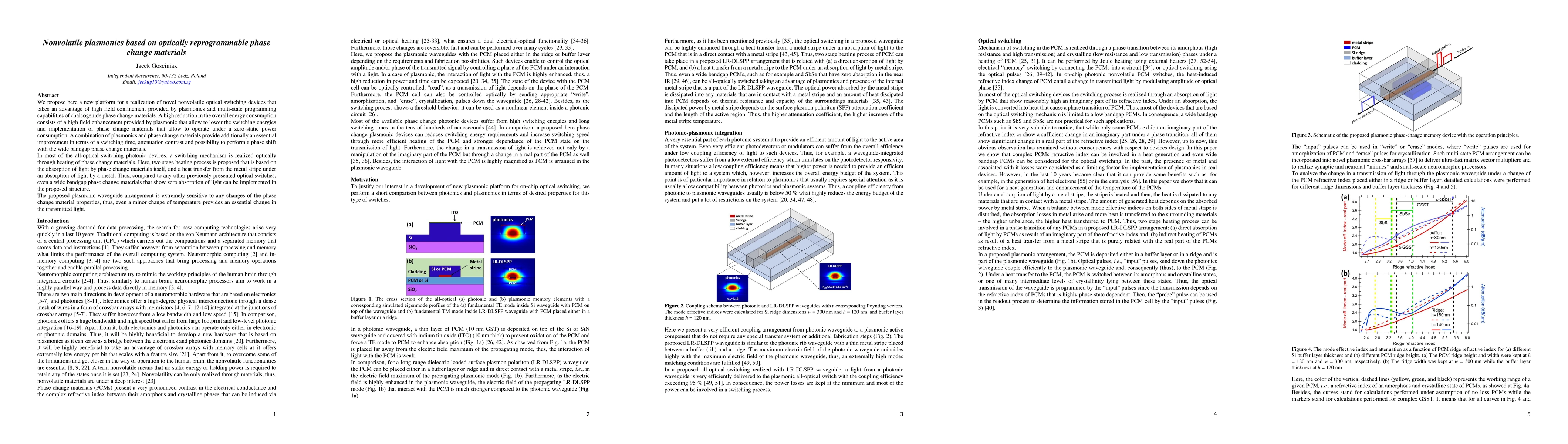 This paper proposes a novel nonvolatile optical switching platform using plasmonics and chalcogenide phase change materials, aiming to reduce energy consumption through field enhancement and zero-static power operation. The dual-stage heating mechanism enables efficient switching even with wide bandgap materials that typically have low light absorption.