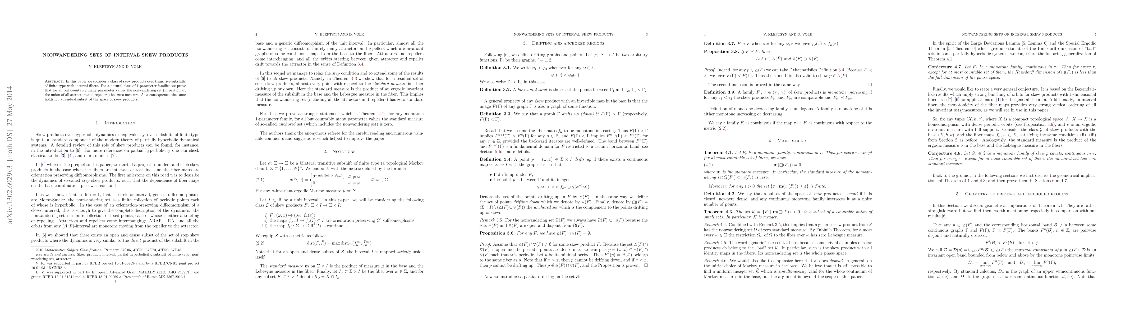 This paper investigates skew products over transitive subshifts of finite type with interval fibers, proving that for most parameter values, the nonwandering set has zero measure. Consequently, this result extends to a residual subset of the space of skew products.