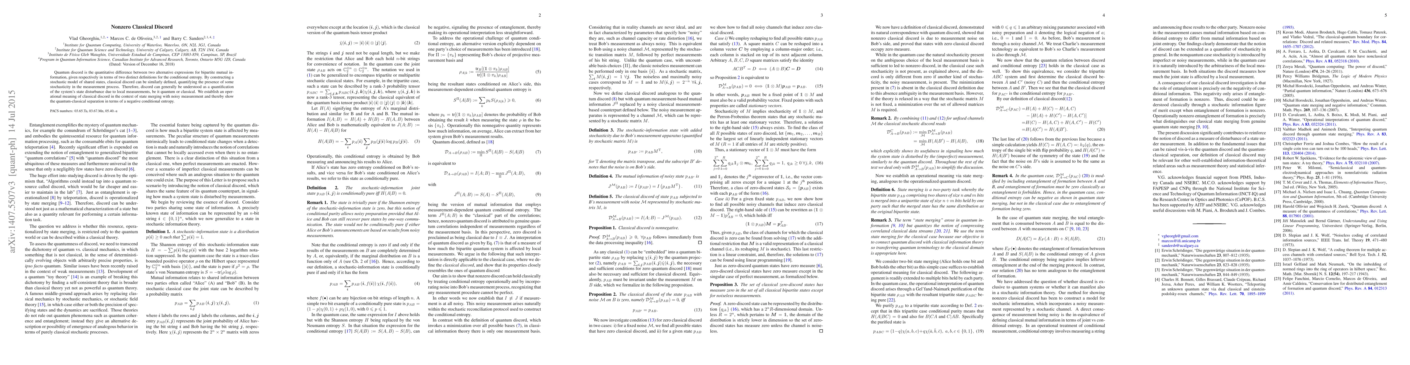This paper introduces classical discord as a measure of stochasticity in measurement processes, analogous to quantum discord. It establishes an operational meaning for classical discord in scenarios involving state merging and noisy measurements, highlighting the quantum-classical distinction through negative conditional entropy.