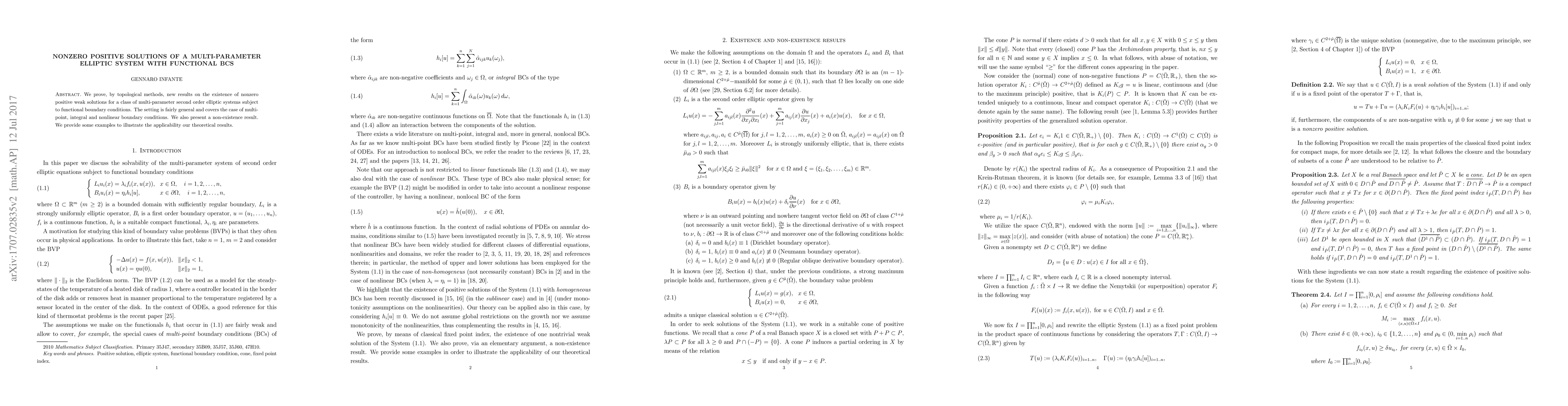 This paper proves the existence of nonzero positive weak solutions for multi-parameter elliptic systems with functional boundary conditions using topological methods. It also presents a non-existence result and provides examples to demonstrate the applicability of the theoretical findings.