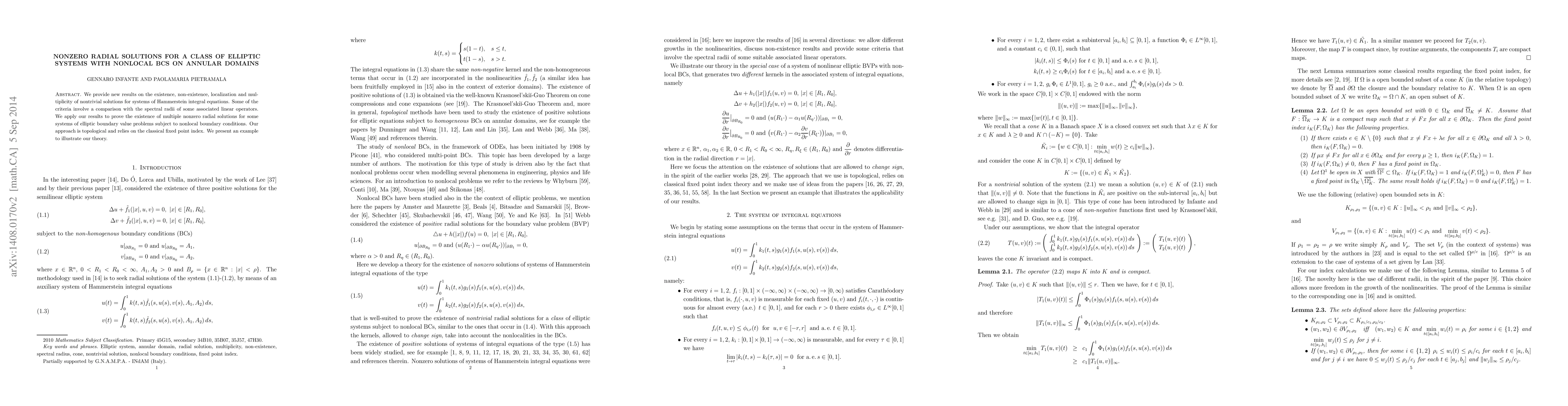 This paper establishes criteria for the existence and multiplicity of nontrivial solutions for Hammerstein integral equations, applying topological methods to elliptic boundary value problems with nonlocal boundary conditions. It demonstrates the presence of multiple nonzero radial solutions using the fixed point index.