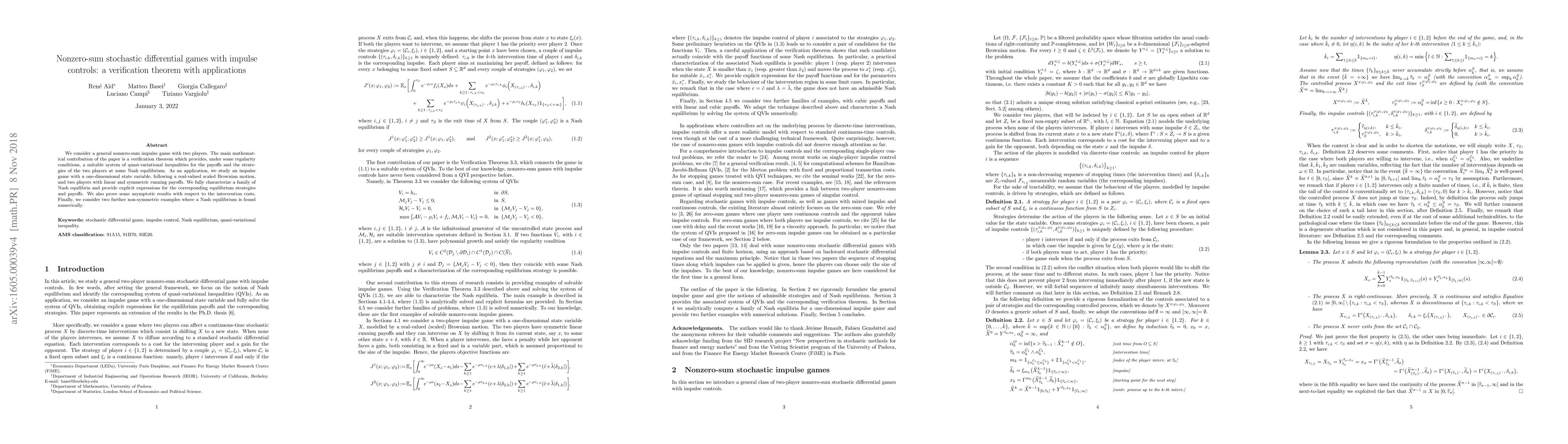 Researchers develop a verification theorem for nonzero-sum stochastic differential games with impulse controls, enabling the characterization of Nash equilibria and explicit expressions for optimal strategies and value functions in specific applications.