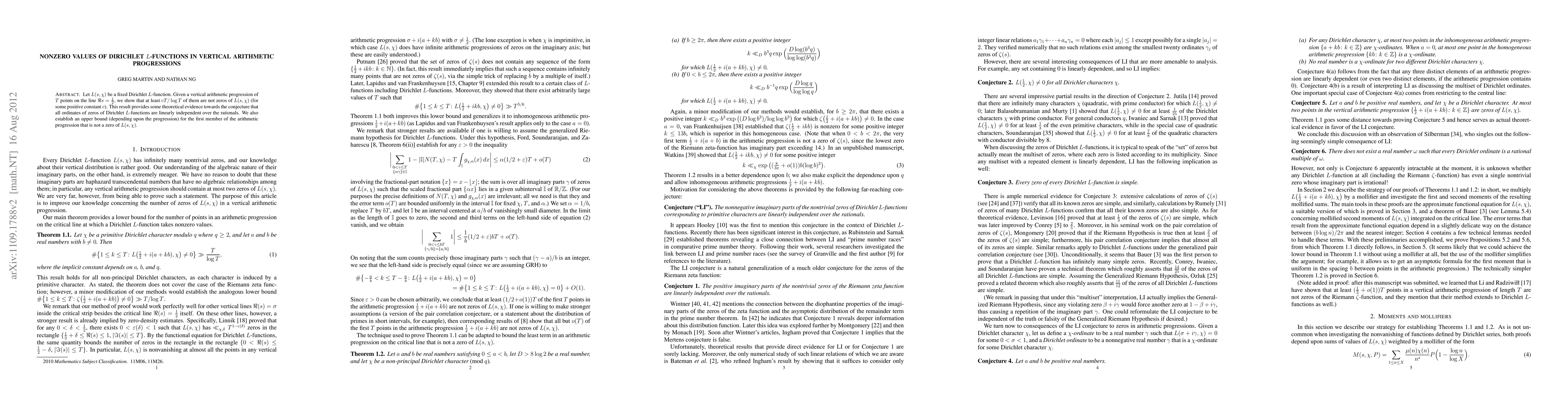 The work introduces a novel approach to analyzing the distribution of non-zero values of Dirichlet L-functions in vertical arithmetic progressions, offering insights that support a significant conjecture in analytic number theory.