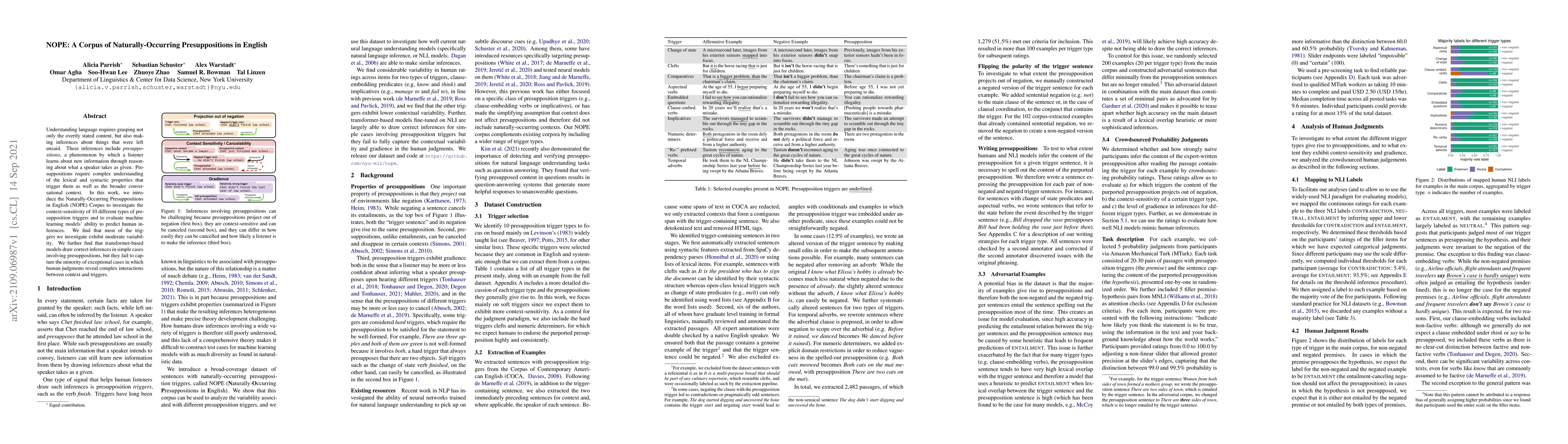 Understanding language requires grasping not only the overtly stated content, but also making inferences about things that were left unsaid. These inferences include presuppositions, a phenomenon by which a listener learns about new information through reasoning about what a speaker takes as given. Presuppositions require complex understanding of the lexical and syntactic properties that trigger them as well as the broader conversational context. In this work, we introduce the Naturally-Occurring Presuppositions in English (NOPE) Corpus to investigate the context-sensitivity of 10 different types of presupposition triggers and to evaluate machine learning models' ability to predict human inferences. We find that most of the triggers we investigate exhibit moderate variability. We further find that transformer-based models draw correct inferences in simple cases involving presuppositions, but they fail to capture the minority of exceptional cases in which human judgments reveal complex interactions between context and triggers.