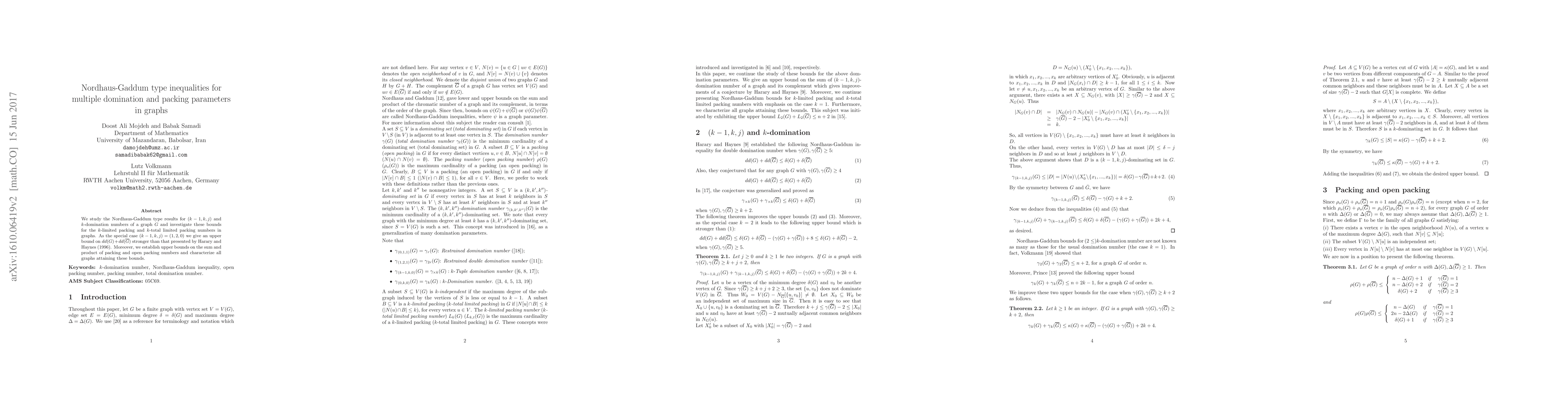 This paper explores Nordhaus-Gaddum type inequalities for $(k-1,k,j)$ and $k$-domination numbers in graphs, establishing stronger bounds for $dd(G)+dd(\overline{G})$ and providing upper bounds on the sum and product of packing and open packing numbers, with characterization of graphs achieving these bounds.