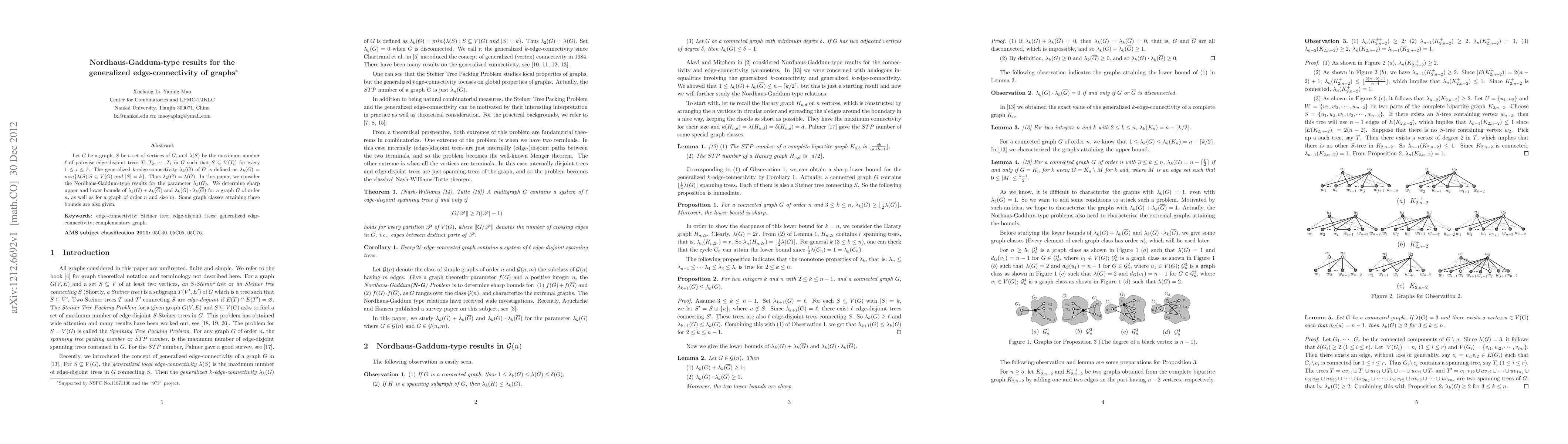 Let $G$ be a graph, $S$ be a set of vertices of $G$, and $\lambda(S)$ be the maximum number $\ell$ of pairwise edge-disjoint trees $T_1, T_2,..., T_{\ell}$ in $G$ such that $S\subseteq V(T_i)$ for every $1\leq i\leq \ell$. The generalized $k$-edge-connectivity $\lambda_k(G)$ of $G$ is defined as $\lambda_k(G)= min\{\lambda(S) | S\subseteq V(G) \ and \ |S|=k\}$. Thus $\lambda_2(G)=\lambda(G)$. In this paper, we consider the Nordhaus-Gaddum-type results for the parameter $\lambda_k(G)$. We determine sharp upper and lower bounds of $\lambda_k(G)+\lambda_k(\bar{G})$ and $\lambda_k(G)... \lambda_k(\bar{G})$ for a graph $G$ of order $n$, as well as for a graph of order $n$ and size $m$. Some graph classes attaining these bounds are also given.