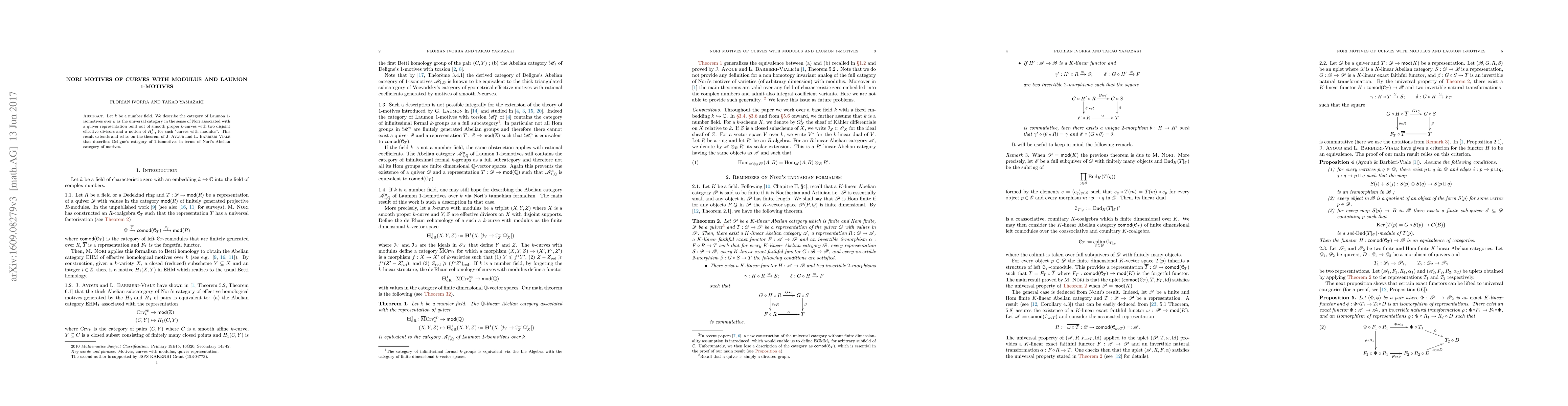 Summary: The paper establishes the category of Laumon 1-isomotives over a number field as the universal Nori category linked to a quiver representation derived from smooth proper curves with two distinct divisors, extending the work of Ayoub and Barbieri-Viale on Deligne's category of 1-isomotives.