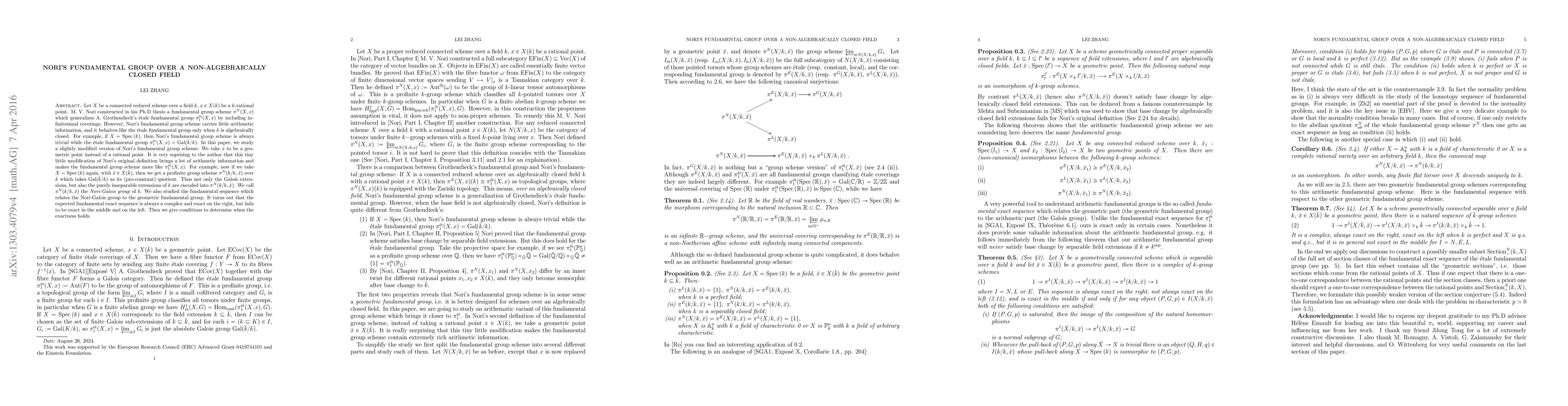 In this note we generalize Nori's definition of the fundamental group scheme from a rational point to an arbitrary base point so that when we take $X$ to be a field $k$ and the point to be $k\subseteq \bar{k}$ we still get a non trivial group scheme which is similar to the absolute Galois group ${\rm Gal}(\bar{k}/k)$. Then we try to understand the group scheme at various levels.