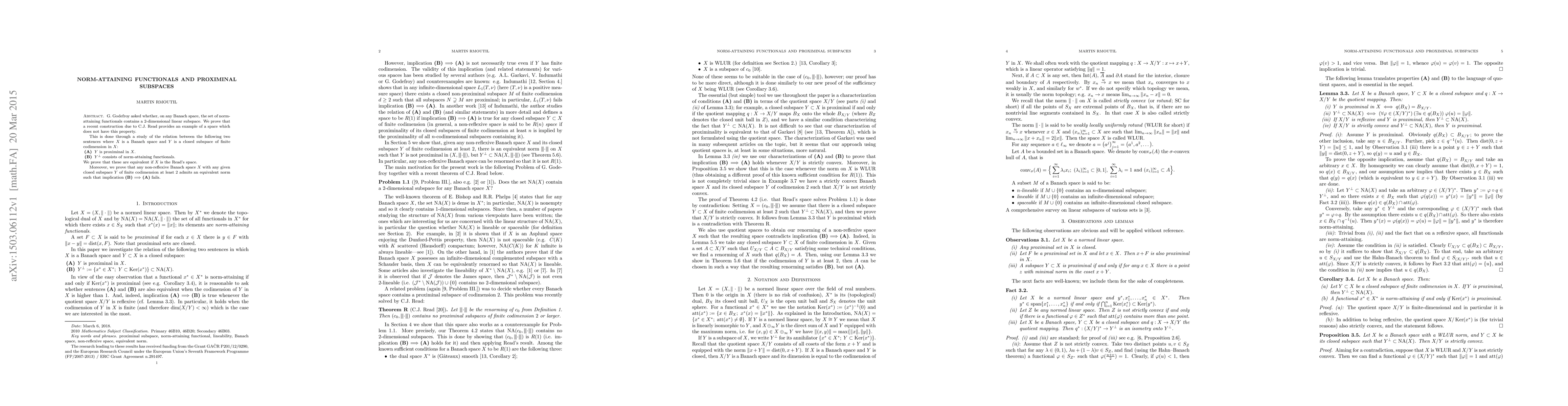 This paper disproves G. Godefroy's conjecture regarding the existence of a 2-dimensional subspace of norm-attaining functionals in Banach spaces. It demonstrates that C.J. Read's construction provides a counterexample, showing that the properties of proximinality and the nature of norm-attaining functionals are intricately linked in non-reflexive Banach spaces.