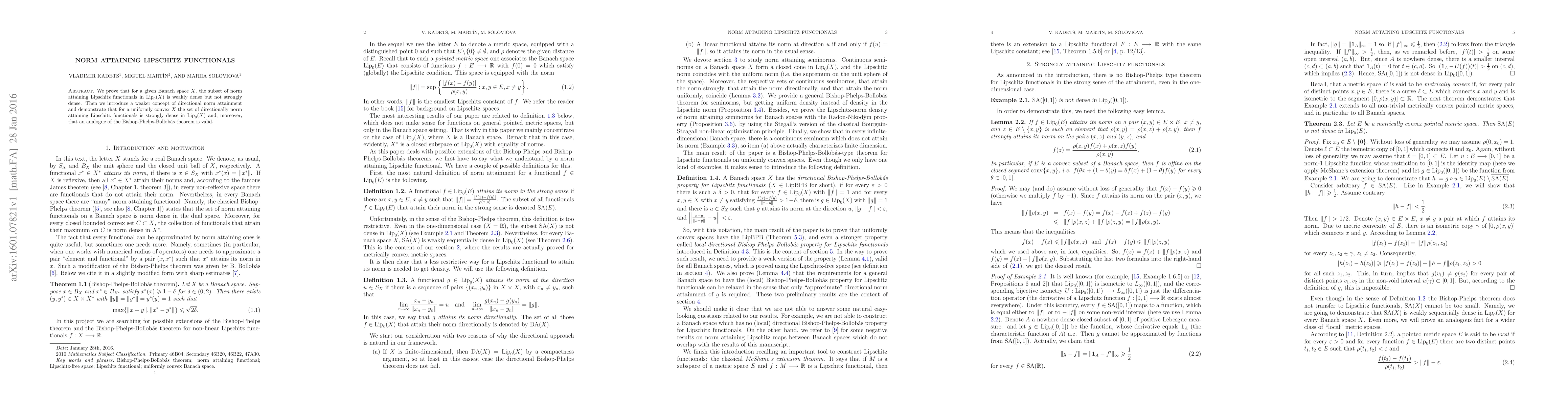 This paper proves that norm attaining Lipschitz functionals in $\mathrm{Lip}_0(X)$ are weakly dense but not strongly dense in a Banach space $X$. It also introduces directional norm attainment and shows that in uniformly convex $X$, this set is strongly dense and validates an analogue of the Bishop-Phelps-Bollobás theorem.