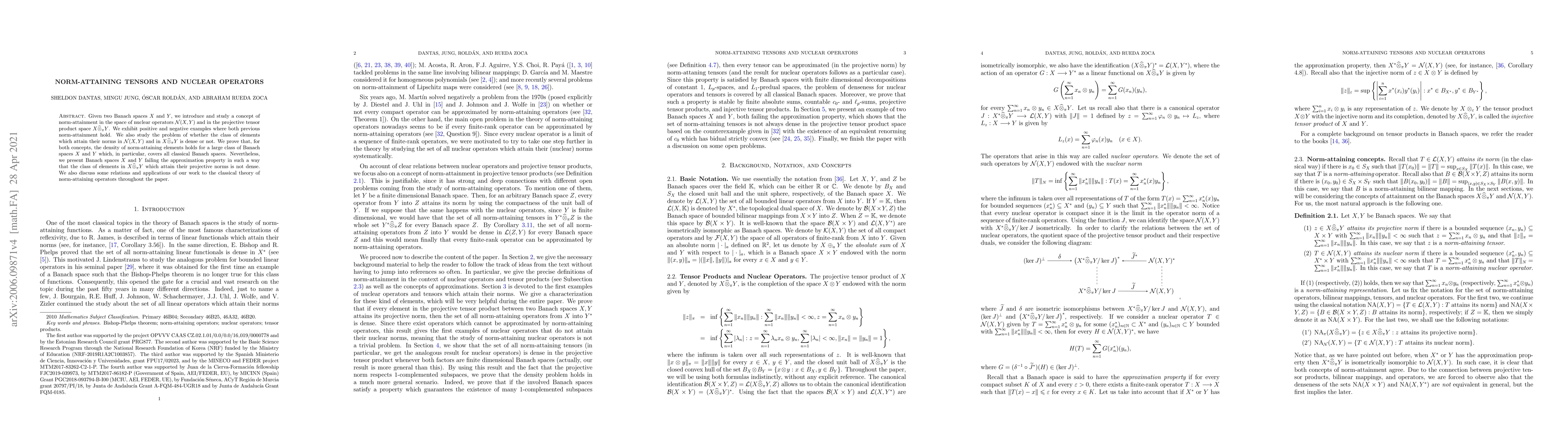 This paper introduces norm-attainment concepts in spaces of nuclear operators and projective tensor products, showing both positive and negative examples and exploring their density.