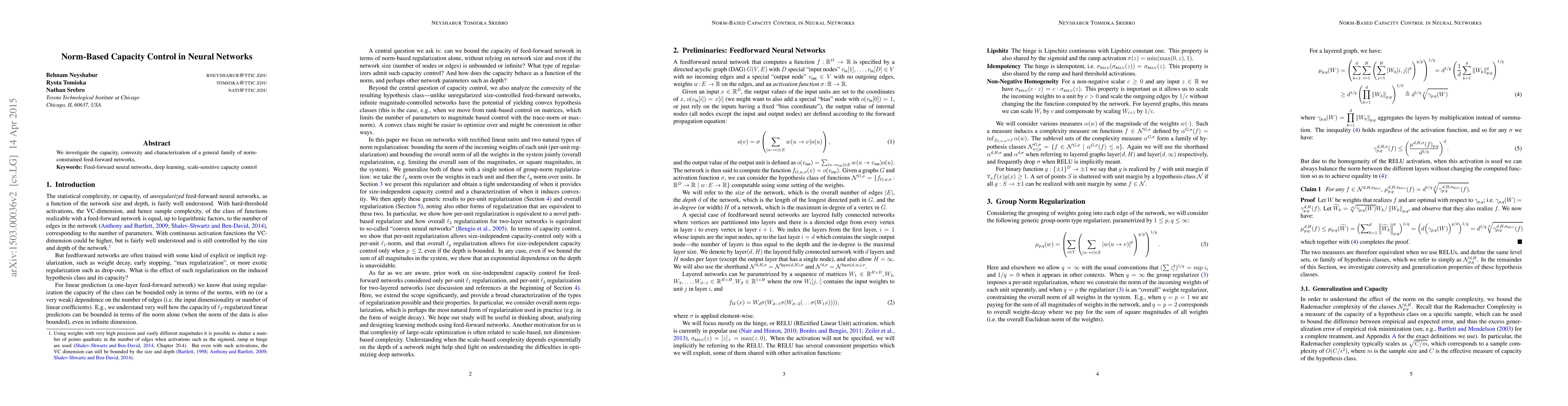 This paper explores norm-constrained neural networks, focusing on their capacity, convexity, and characterizing their general family of architectures. It aims to provide insights into the constraints imposed by these norms on the behavior of feed-forward networks.