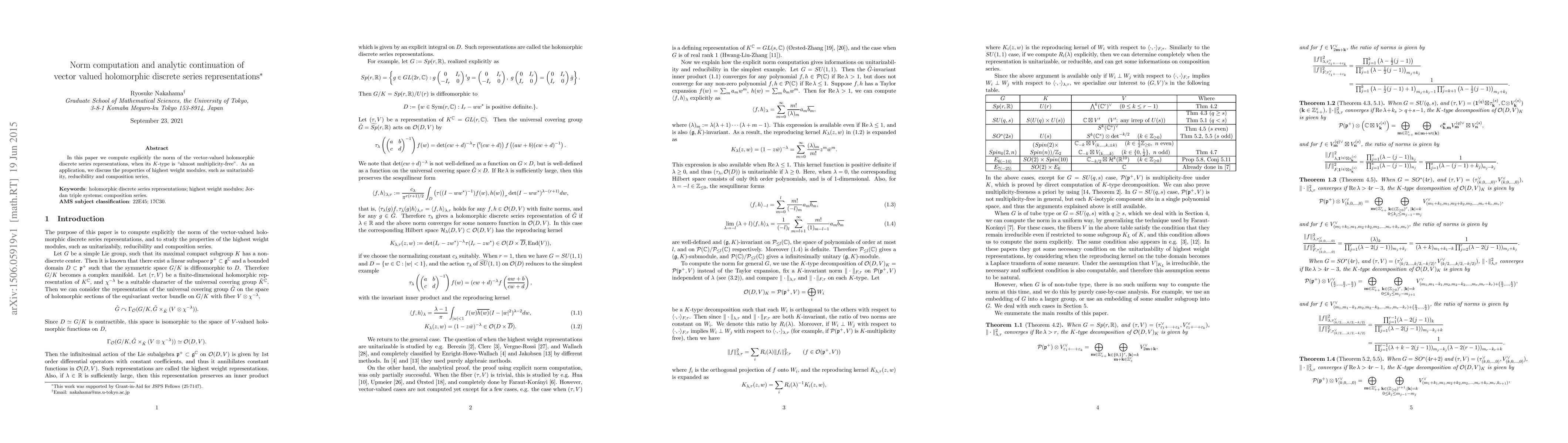 This paper computes the norm of vector-valued holomorphic discrete series representations with "almost multiplicity-free" $K$-type, and applies the findings to analyze properties of highest weight modules, including unitarizability, reducibility, and composition series.
