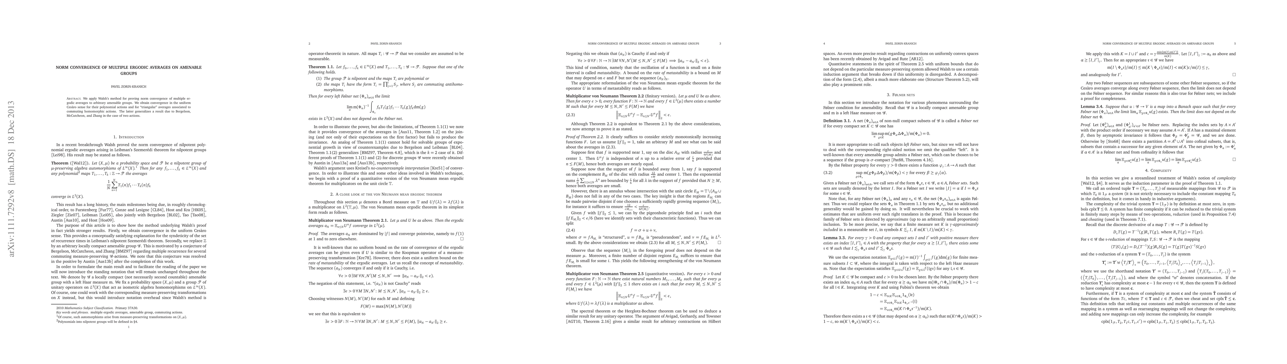 This paper proves norm convergence of multiple ergodic averages on amenable groups using Walsh's method, achieving uniform Cesàro convergence for polynomial and triangular averages associated with commuting homomorphisms, extending previous results for two actions.
